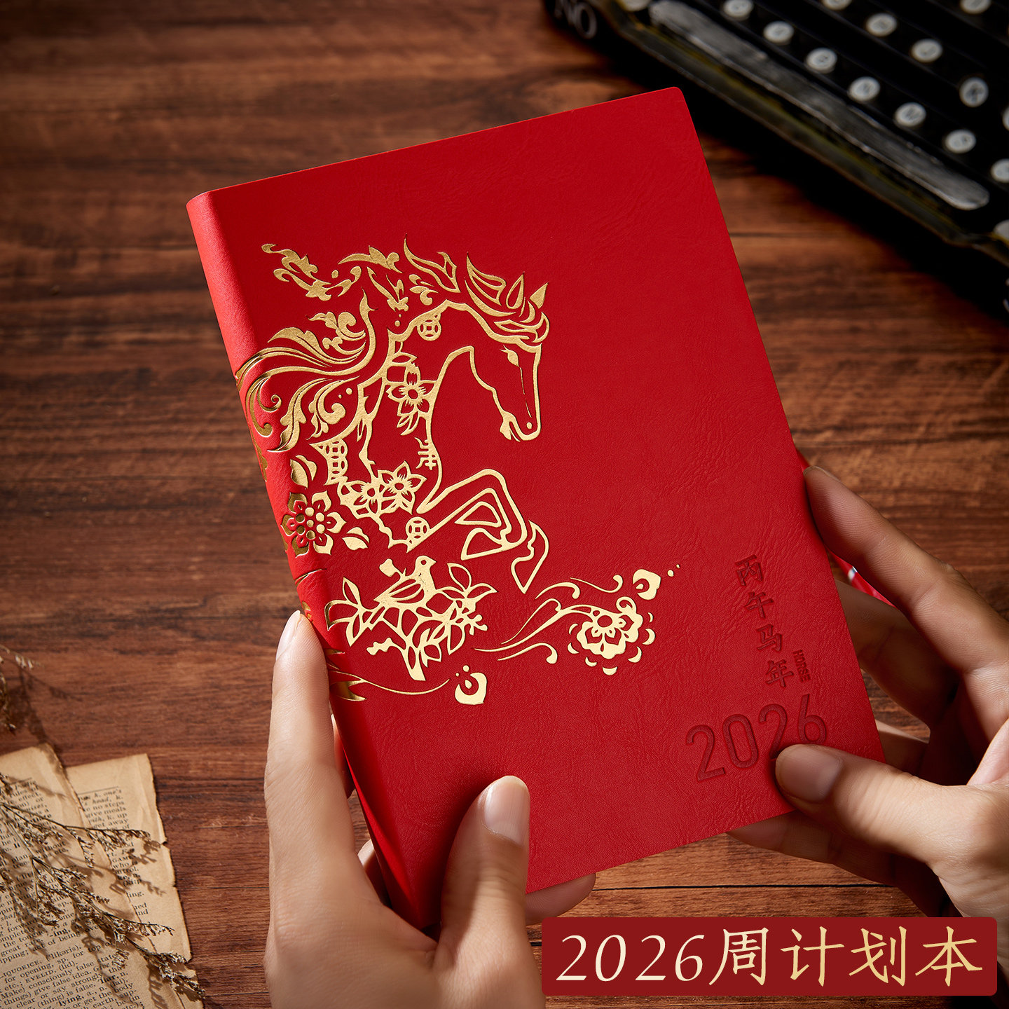 文创艺马迎新春新中式笔记本本子2026年中国风周计划商务办公礼品套装马年A5每日计划日程本企业定制可印logo