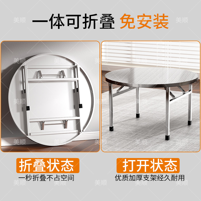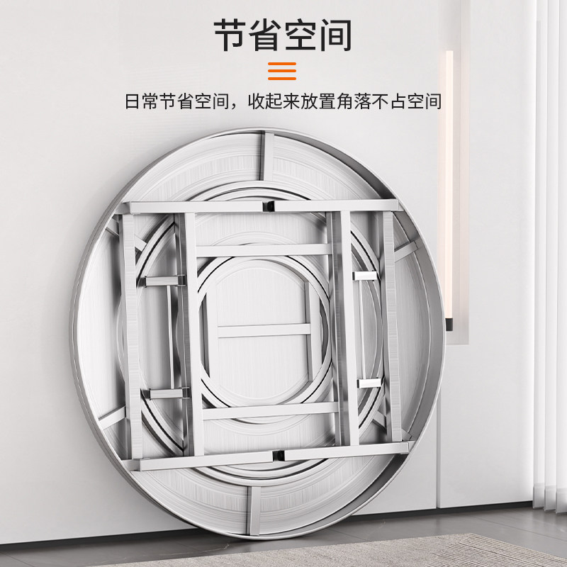 不锈钢转盘圆桌家用加厚餐桌商用饭店火锅农村酒席一体折叠桌子