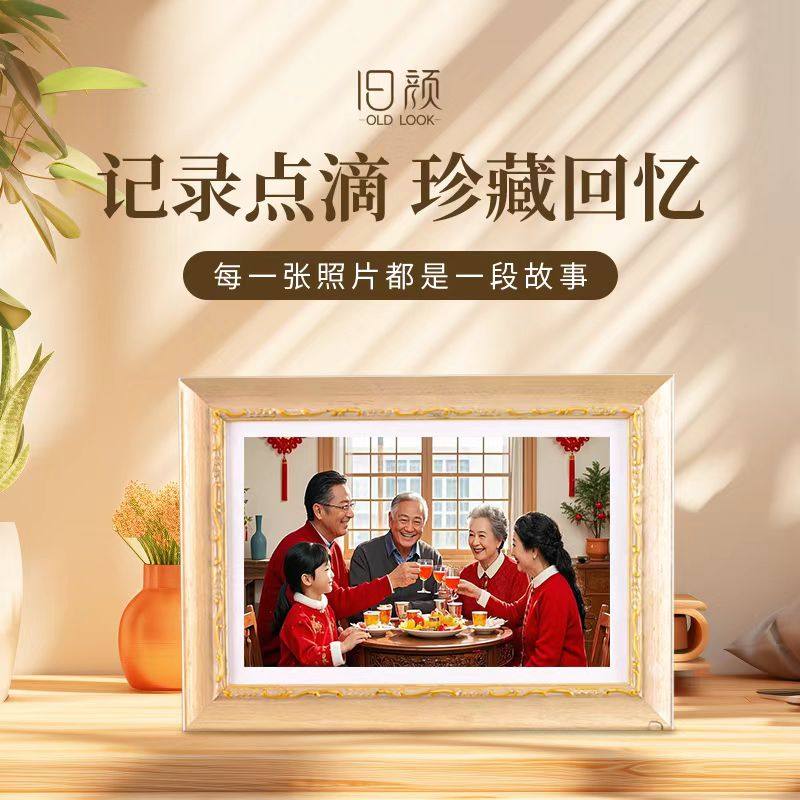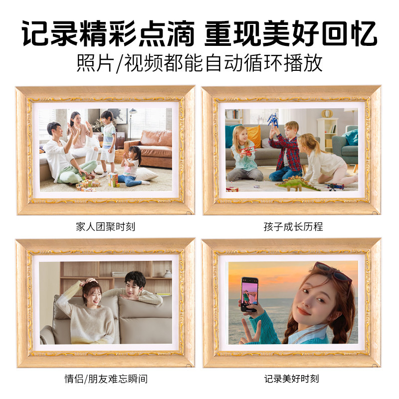 旧颜实木10.1寸电子相框智能远程传输照片视频高清播放器触屏数码相册家用横竖摆台相框情侣送礼纪念结婚礼物