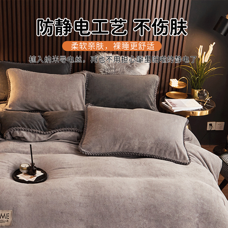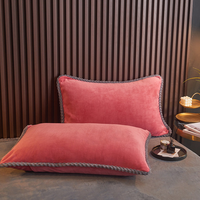 花花公子加厚牛奶绒枕套一对装48x74冬季家用珊瑚绒单人枕头套