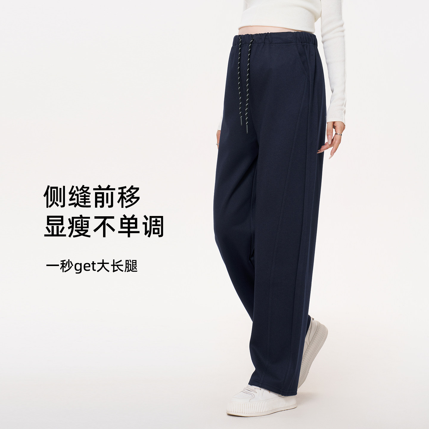 英氏孕妇休闲裤子秋冬外穿加绒保暖阔腿裤2025新款显瘦百搭直筒裤