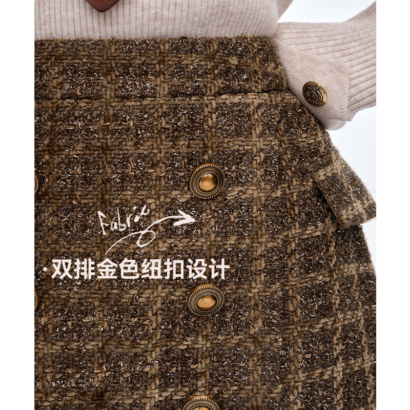 妖精的口袋亮丝粗花呢双排扣半身裙女2025年冬季新款复古显瘦短裙