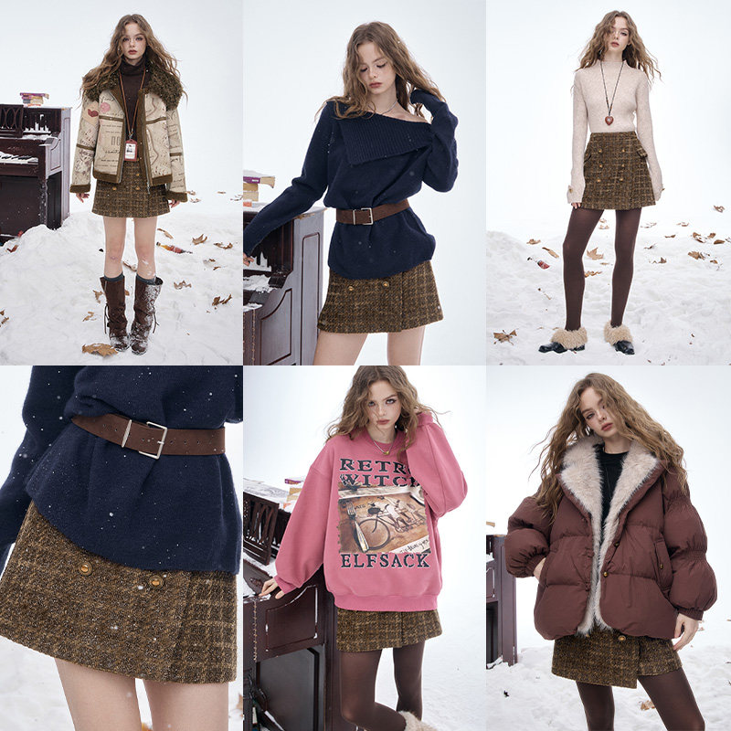 BANANA BABY2025年冬季新款复古格纹半身裙女高腰小个子时尚短裙