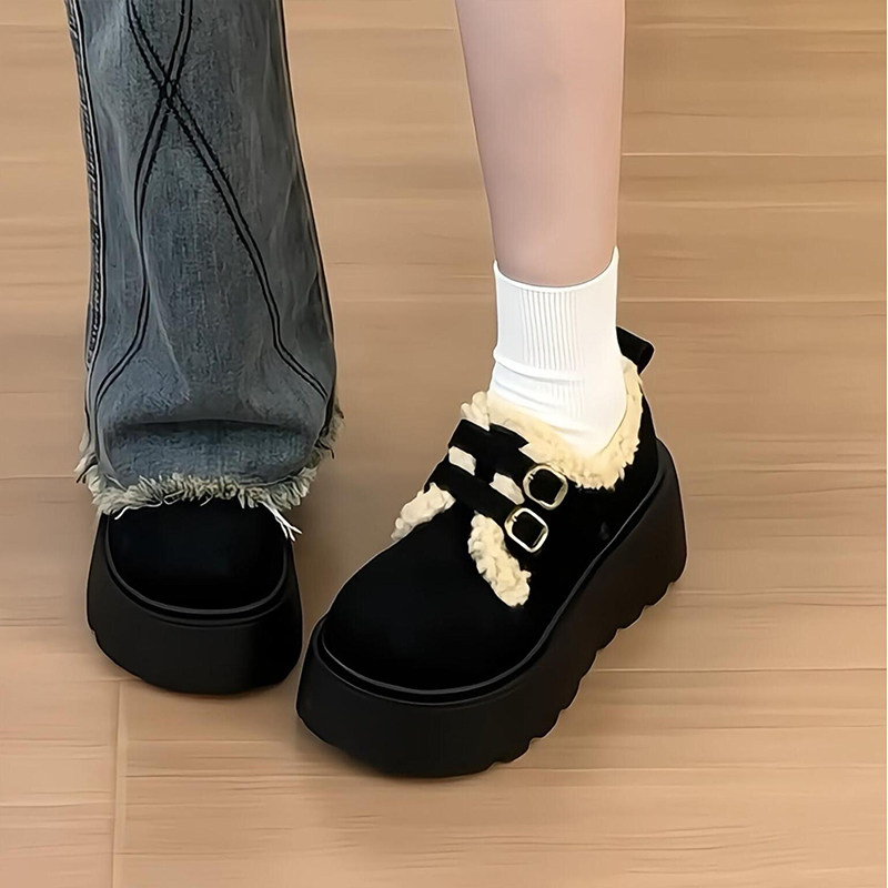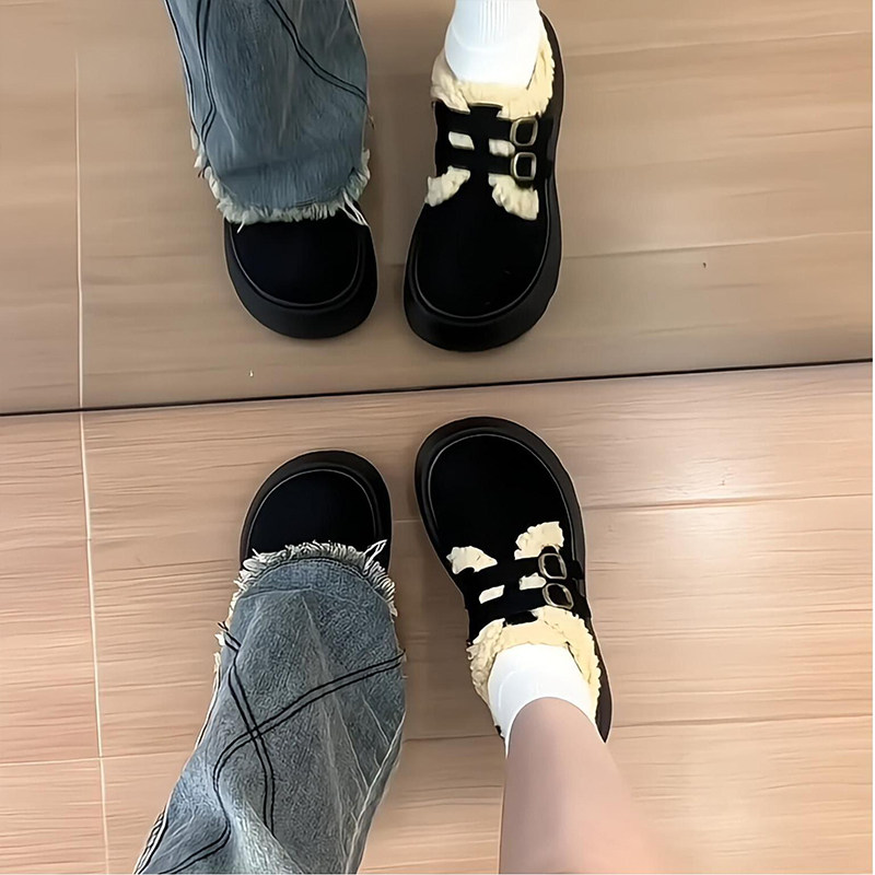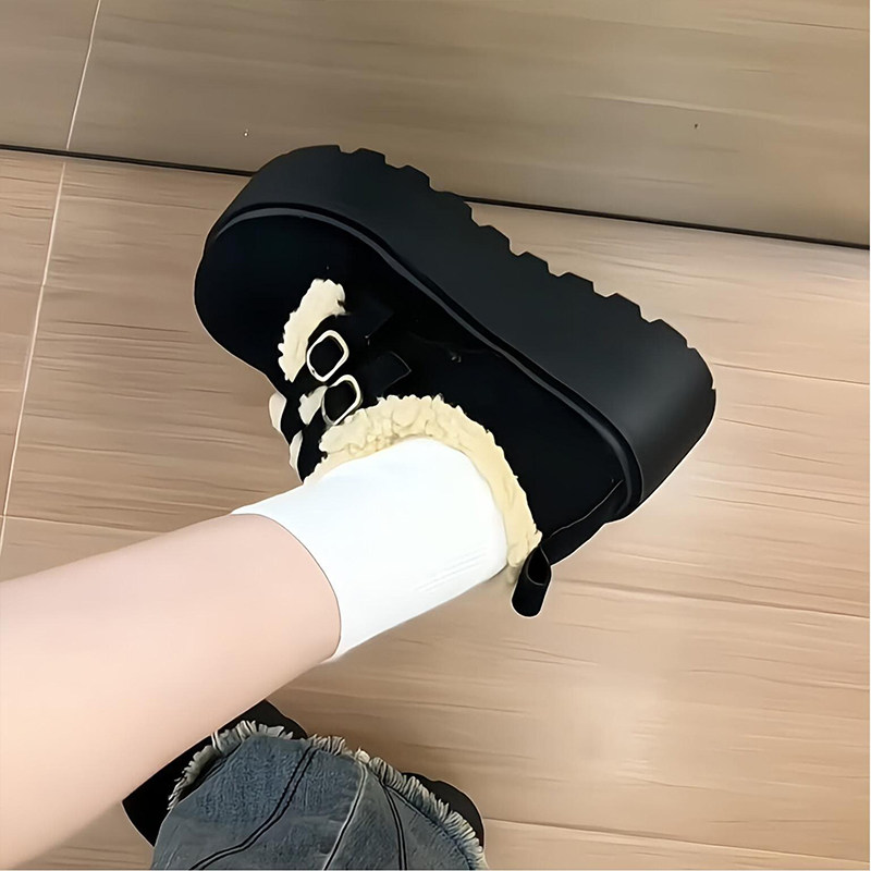 厚底加绒毛毛雪地靴女2025年冬季新款复古保暖勃肯鞋圆头防滑棉鞋
