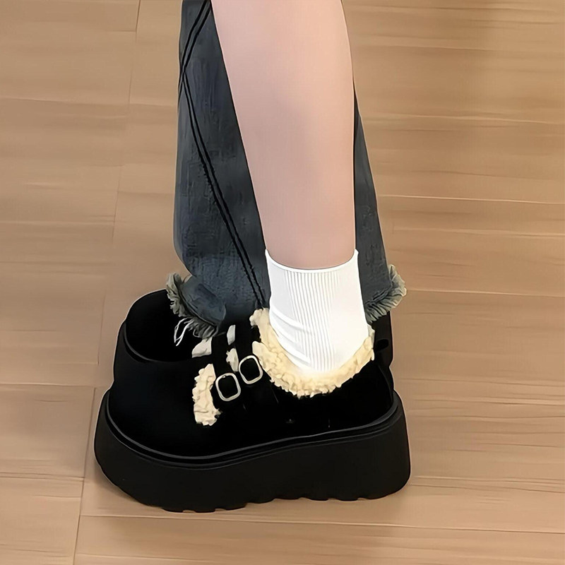 miu家厚底雪地靴女冬季真皮短靴羊毛侧拉链增高厚底加绒毛毛棉鞋
