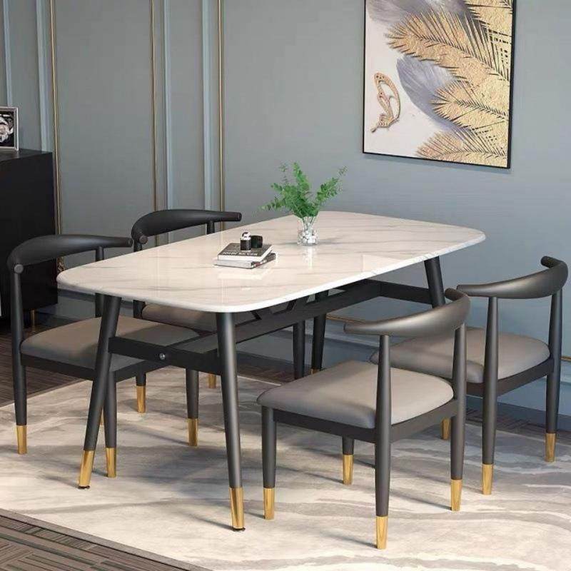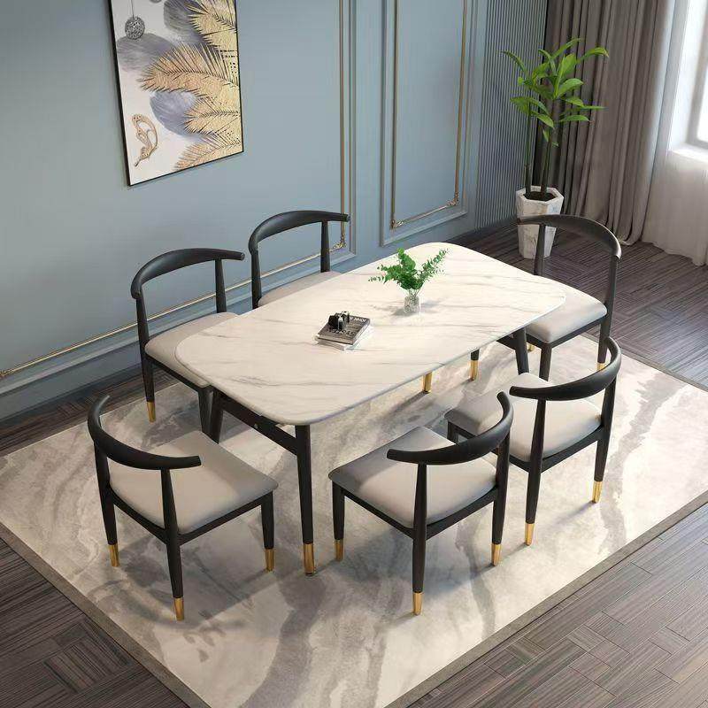 轻奢餐桌家用饭桌现代简约餐桌椅组合出租屋桌椅加厚仿大理石餐台