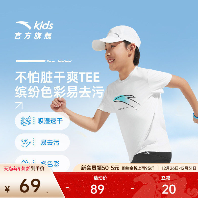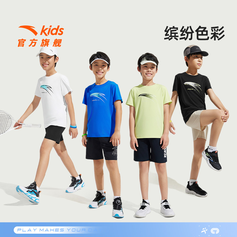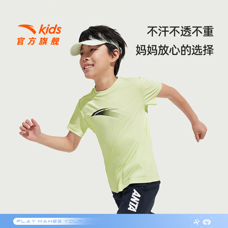 安踏儿童冰感速干短袖T恤男童女童运动上衣2025夏季新款易去污T恤