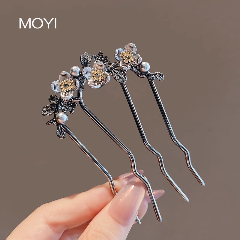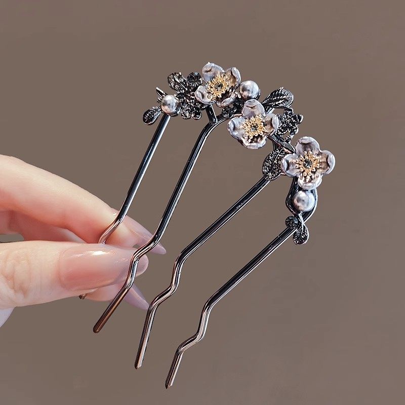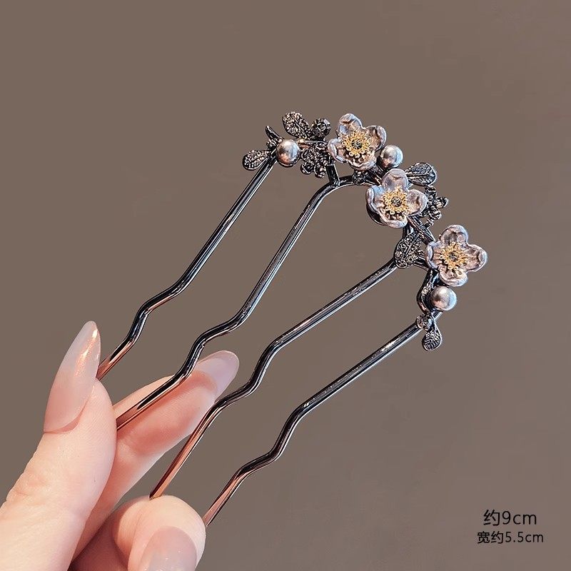 新中式高级感轻奢花m朵插梳盘发U型发簪国潮古风簪子发杈头饰发饰