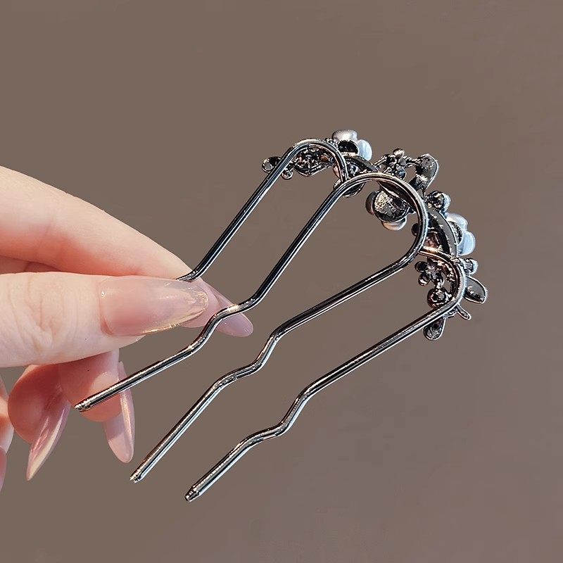 懒人盘发神器丸子头四齿插梳发梳发簪倒插发卡U形发夹造型头饰女