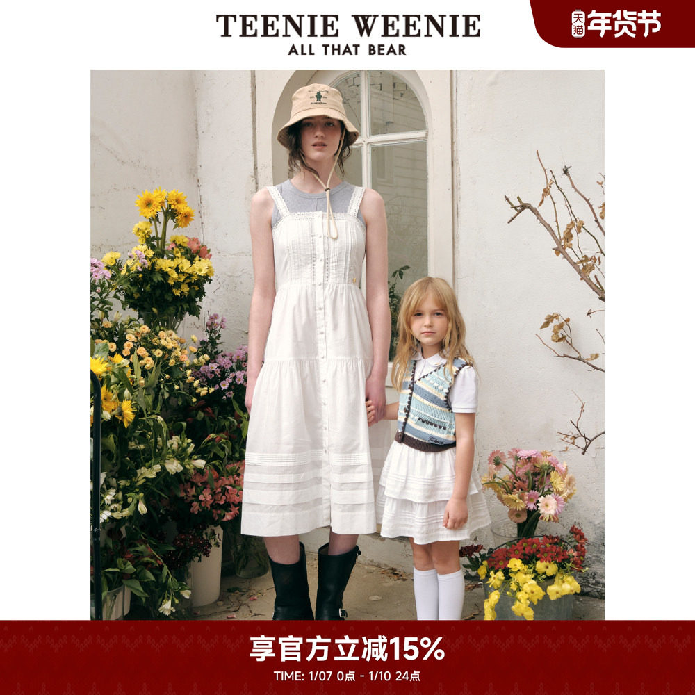 TeenieWeenie小熊奥莱女装法式蕾丝花边优雅气质吊带连衣裙公主裙