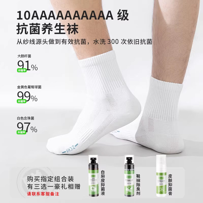 【棉元色】纯棉袜子男10a抗菌防臭袜中筒袜吸汗透气秋冬款运动袜