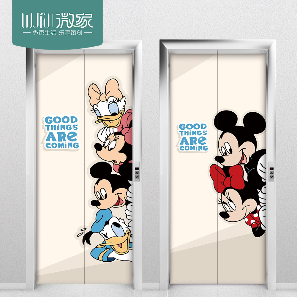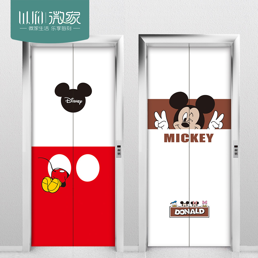 迪士尼米奇电梯门装饰贴纸水井电井贴画改色防水一梯一户入户门贴