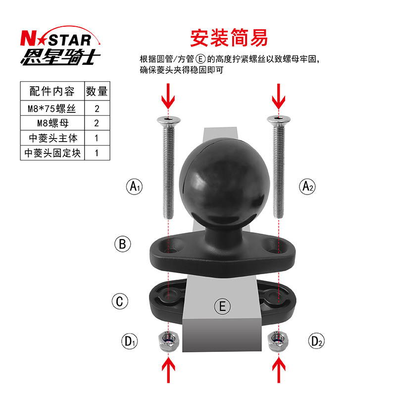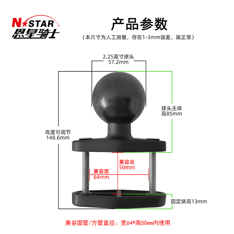 NSTAR农机工业平板电脑支架管梁固定2.25英寸中菱头固定底座配件