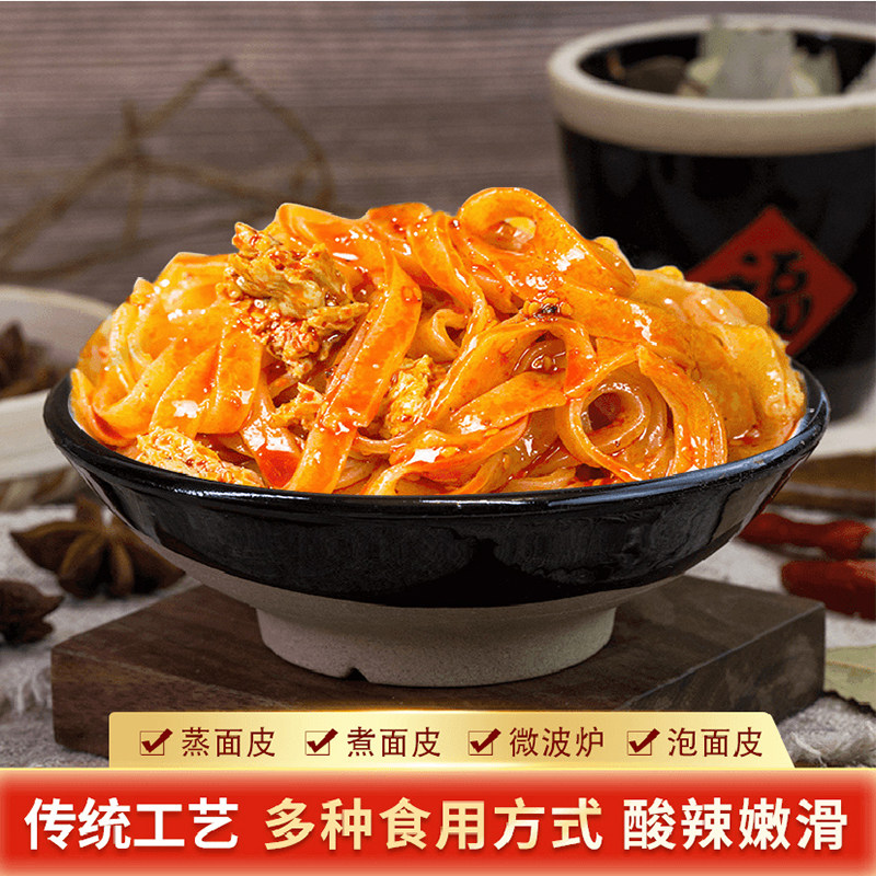 杂八得宝鸡岐山擀面皮正宗西安特产夜宵凉皮小吃速食面筋红油面皮