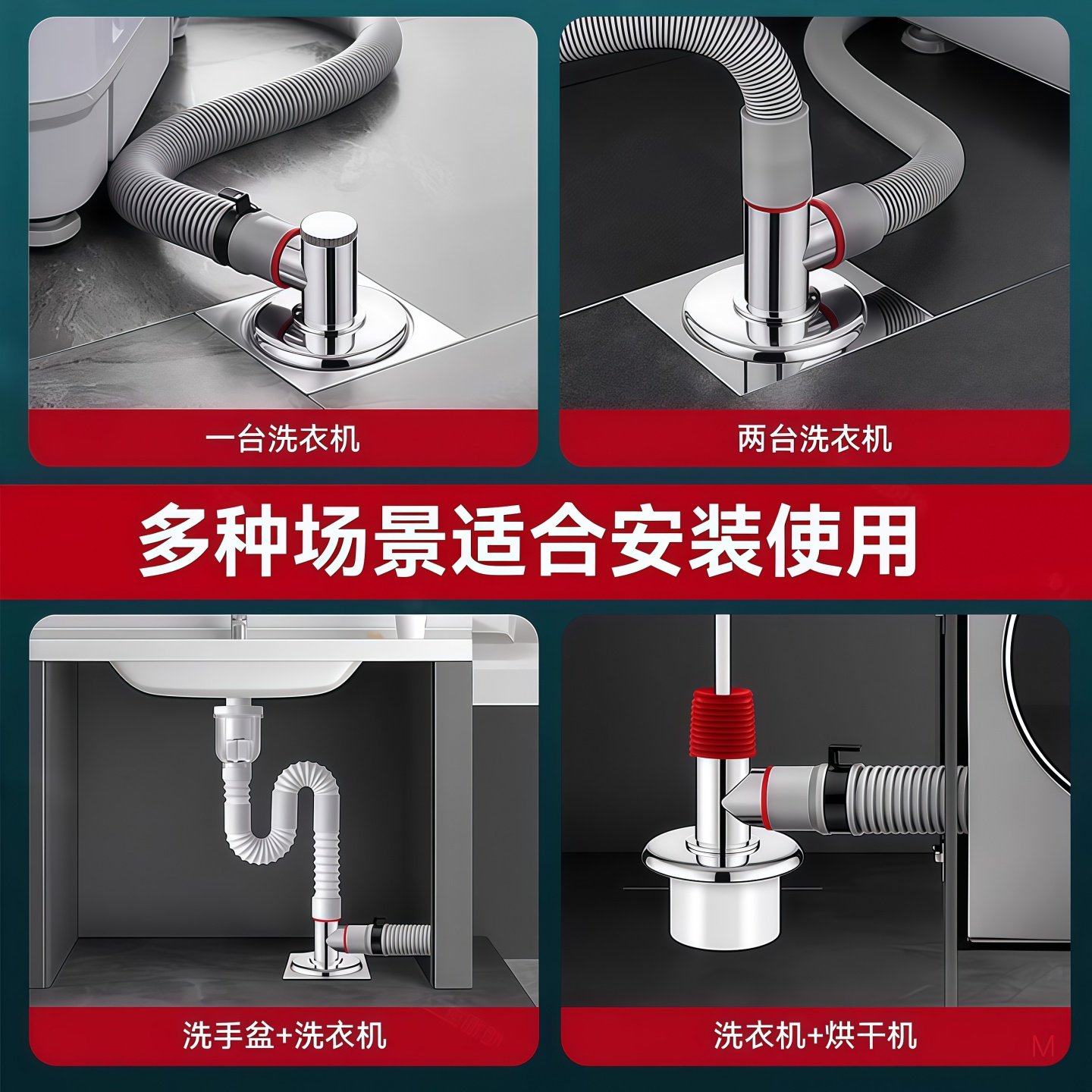 洗衣机下水管三头通地漏双排水专用接头排水管道二合一防臭防溢水