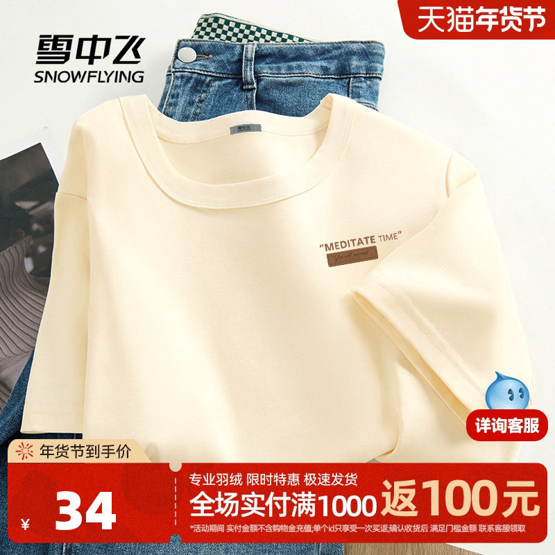 新国货100纯棉t恤女130支双面丝光棉短袖V圆领宽松大码夏季鸡心领