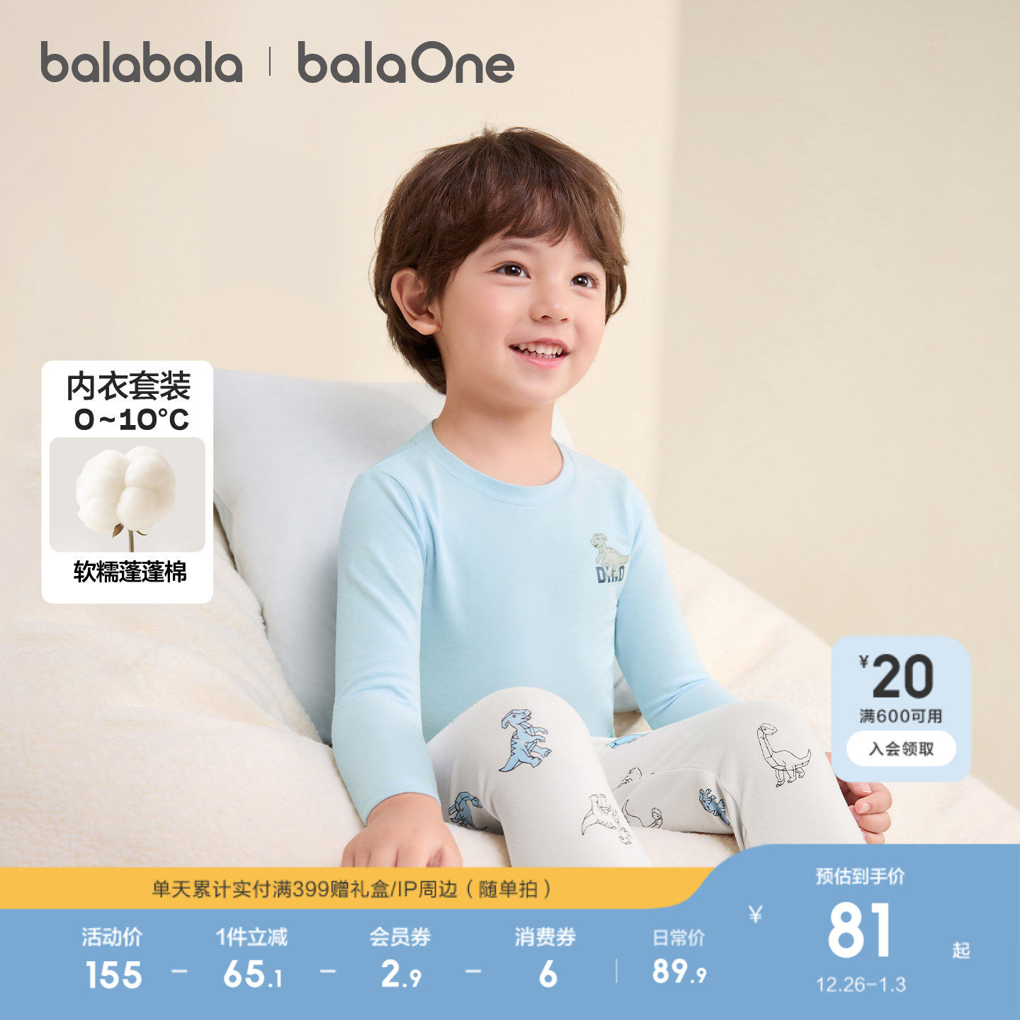 巴拉巴拉男女内衣套装儿童秋衣秋裤两件套新款童装2025秋冬亲肤棉