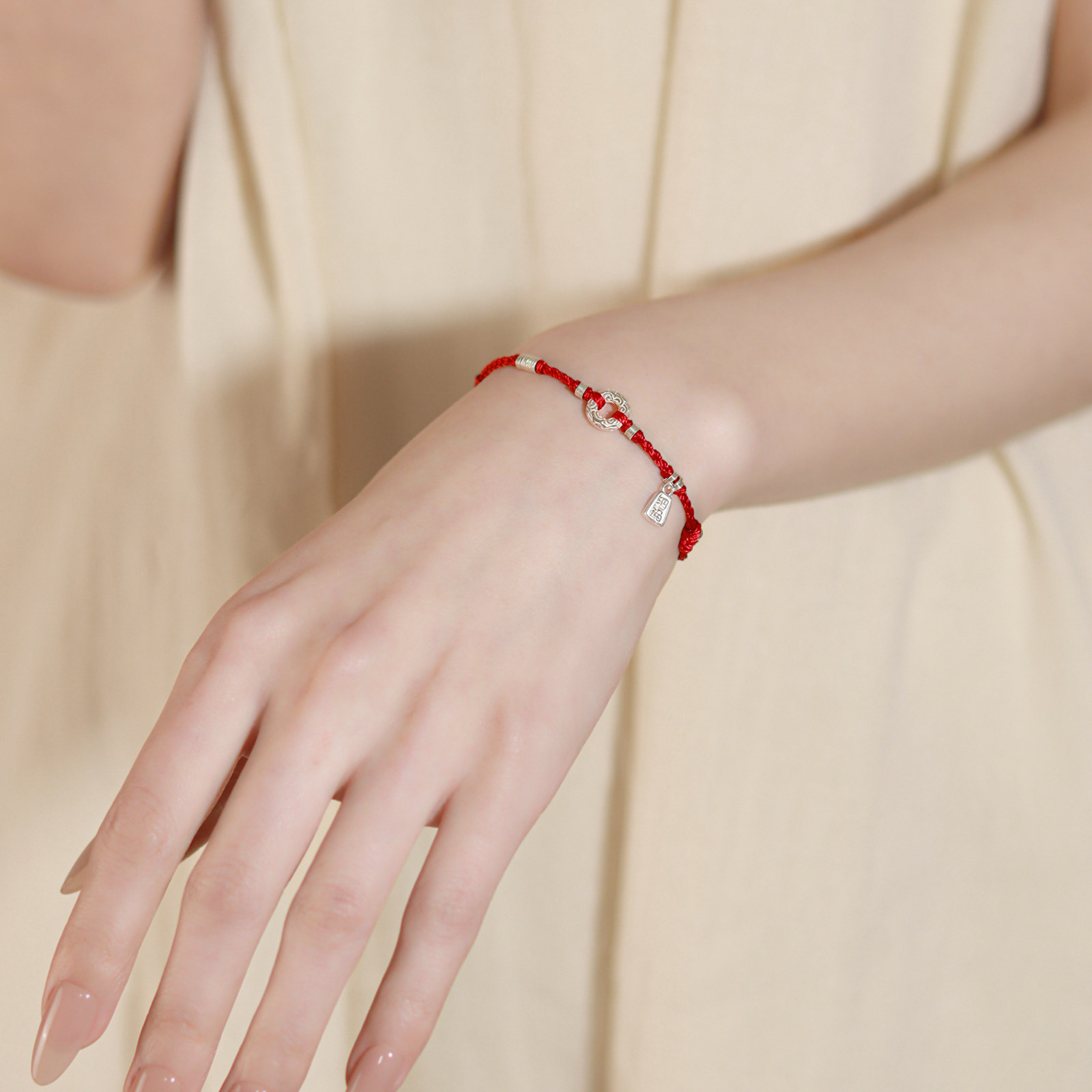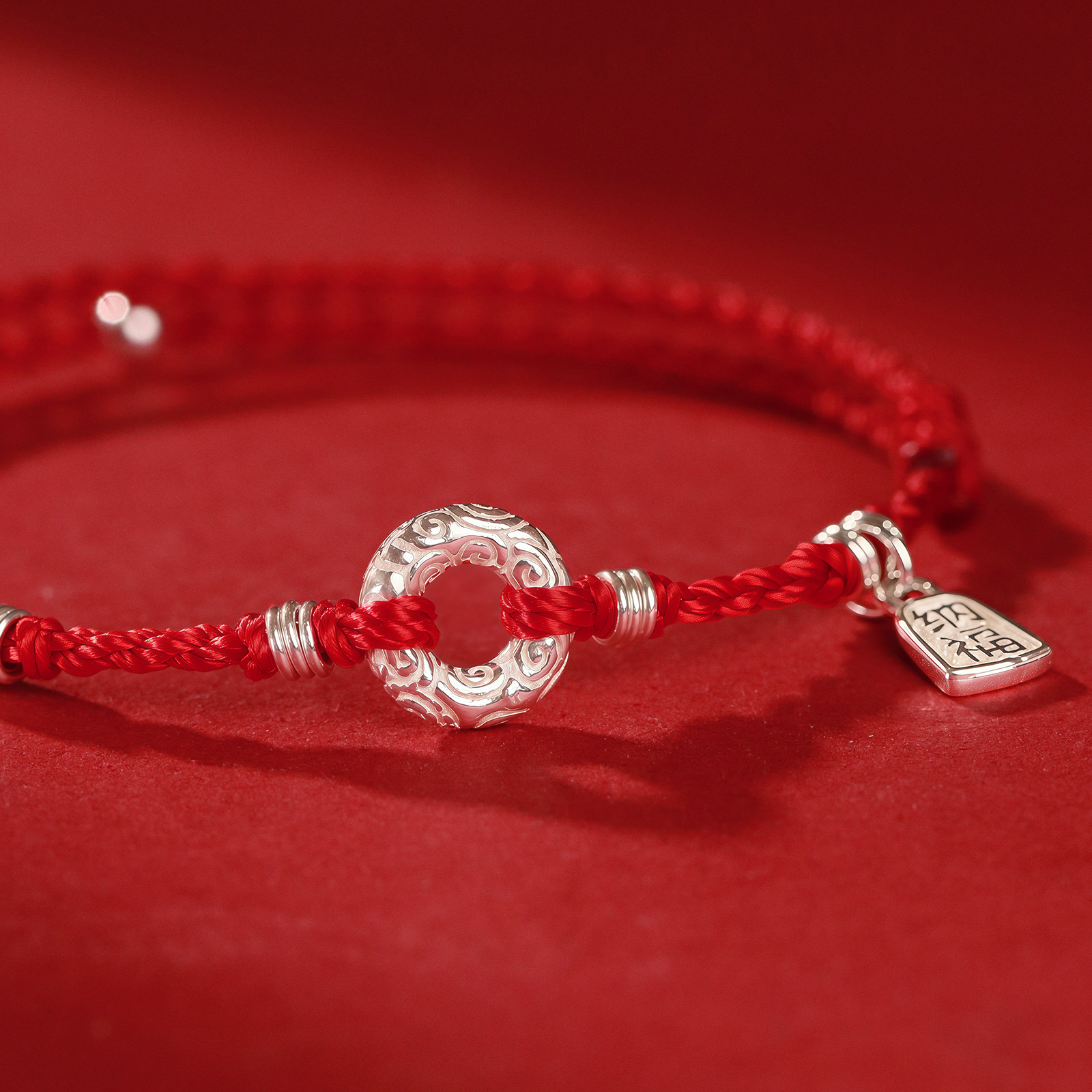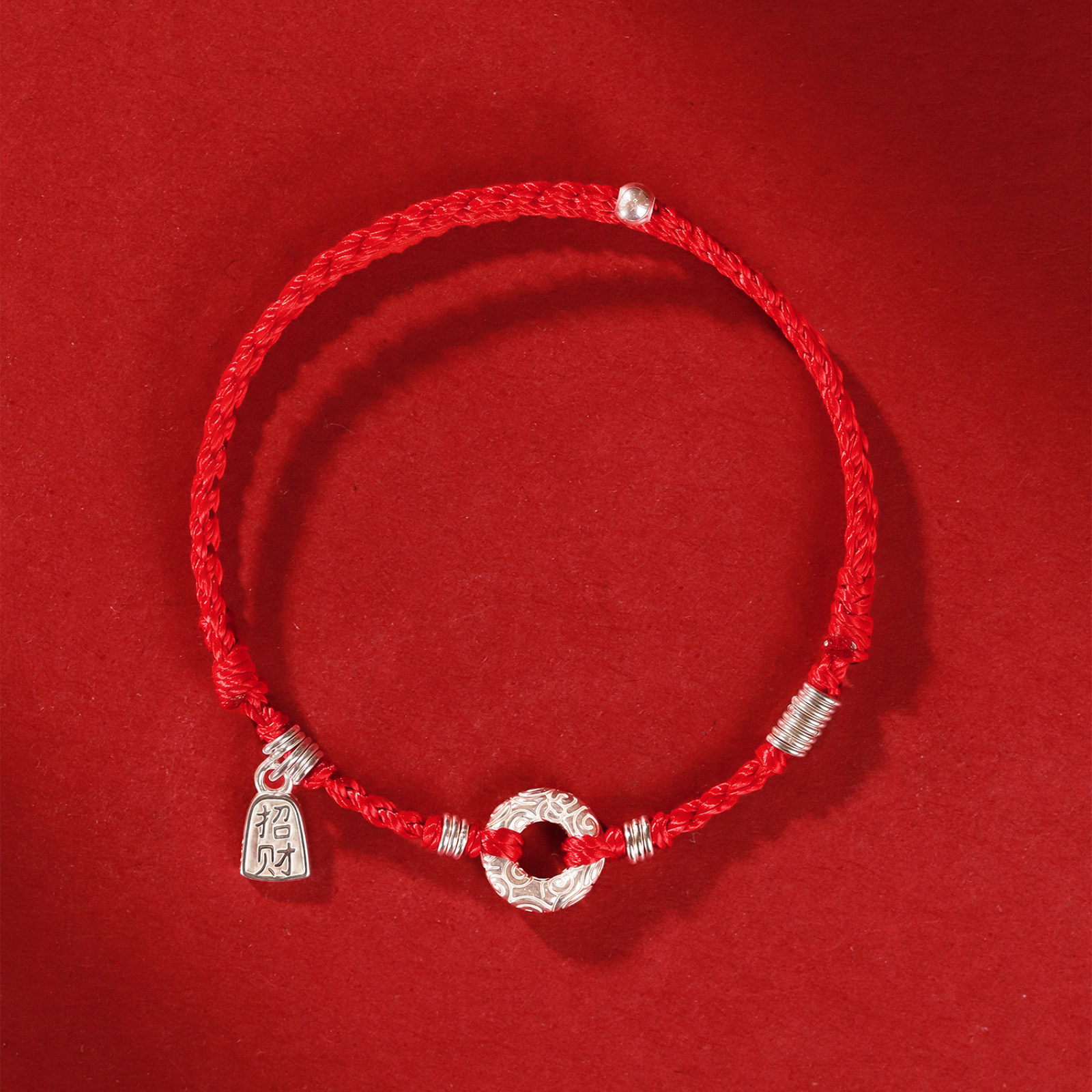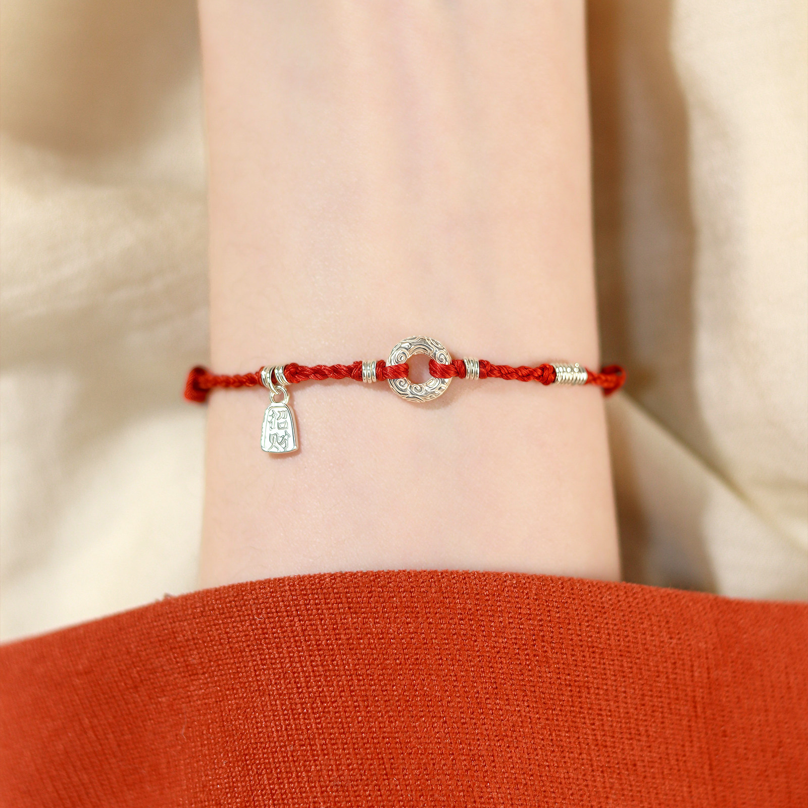 平愿结财纯银平安扣本命年红手绳绝美小众手链编织绳轻奢高级感
