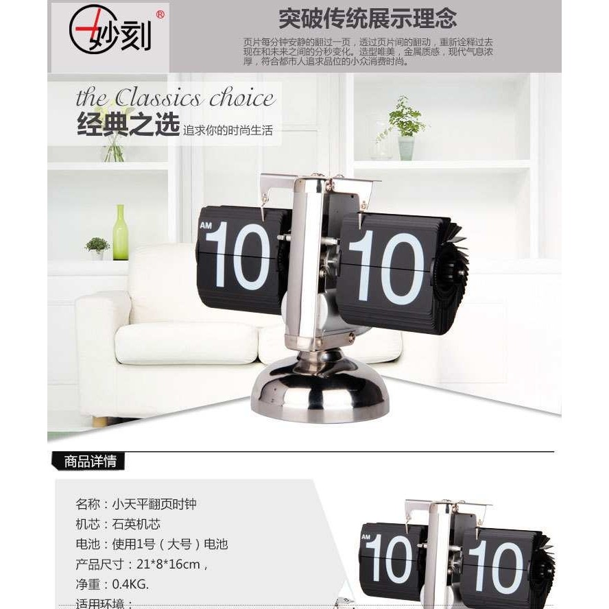创意时尚小天平自动翻页钟单双铃站立钟办公时尚座钟金属摆钟