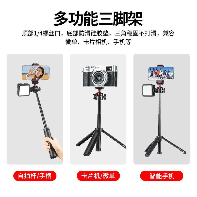 Ulanzi优篮子 MT-16便携迷你三脚架延长杆多功能微单相机手机通用三角架手持拍照自拍杆直播vlog拍摄桌面支架