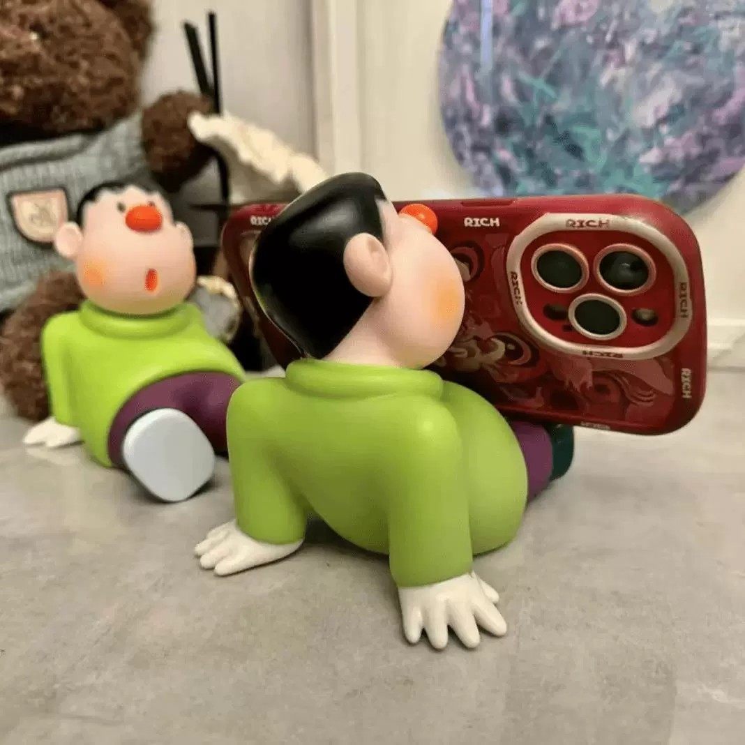 新款歪头胖虎手机支架桌面摆件办公桌家居饰品公仔模型呆萌