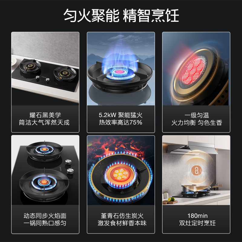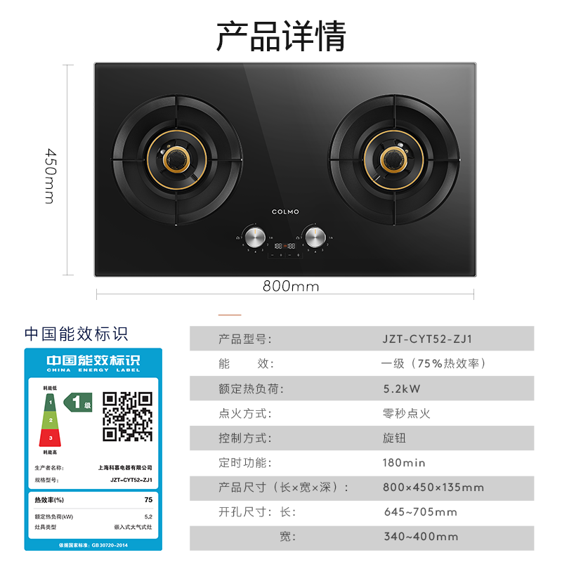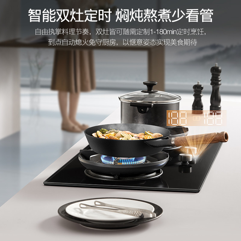 COLMO双头定时燃气灶可调节5.2KW火力烟灶联动爆炒灶具ZJ1
