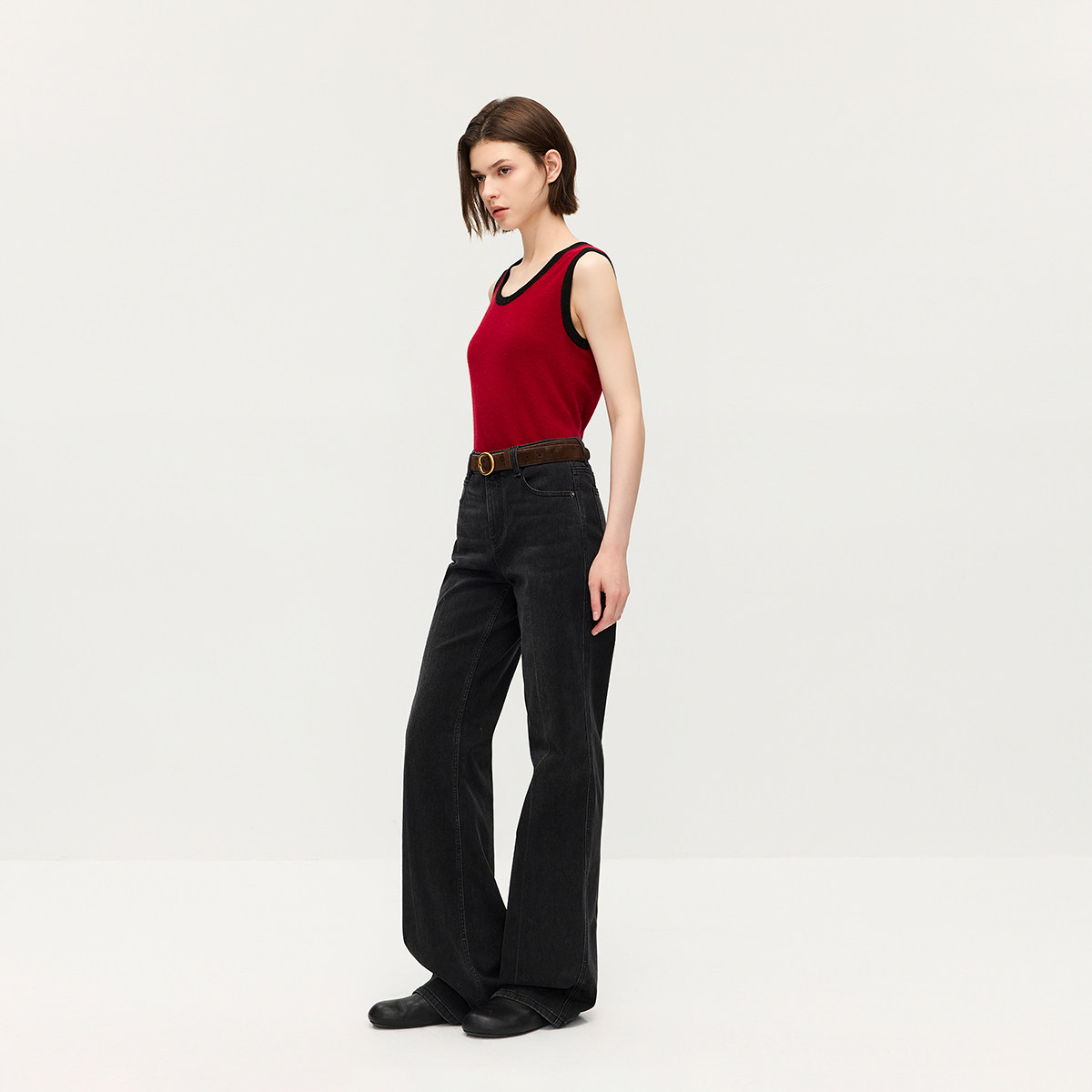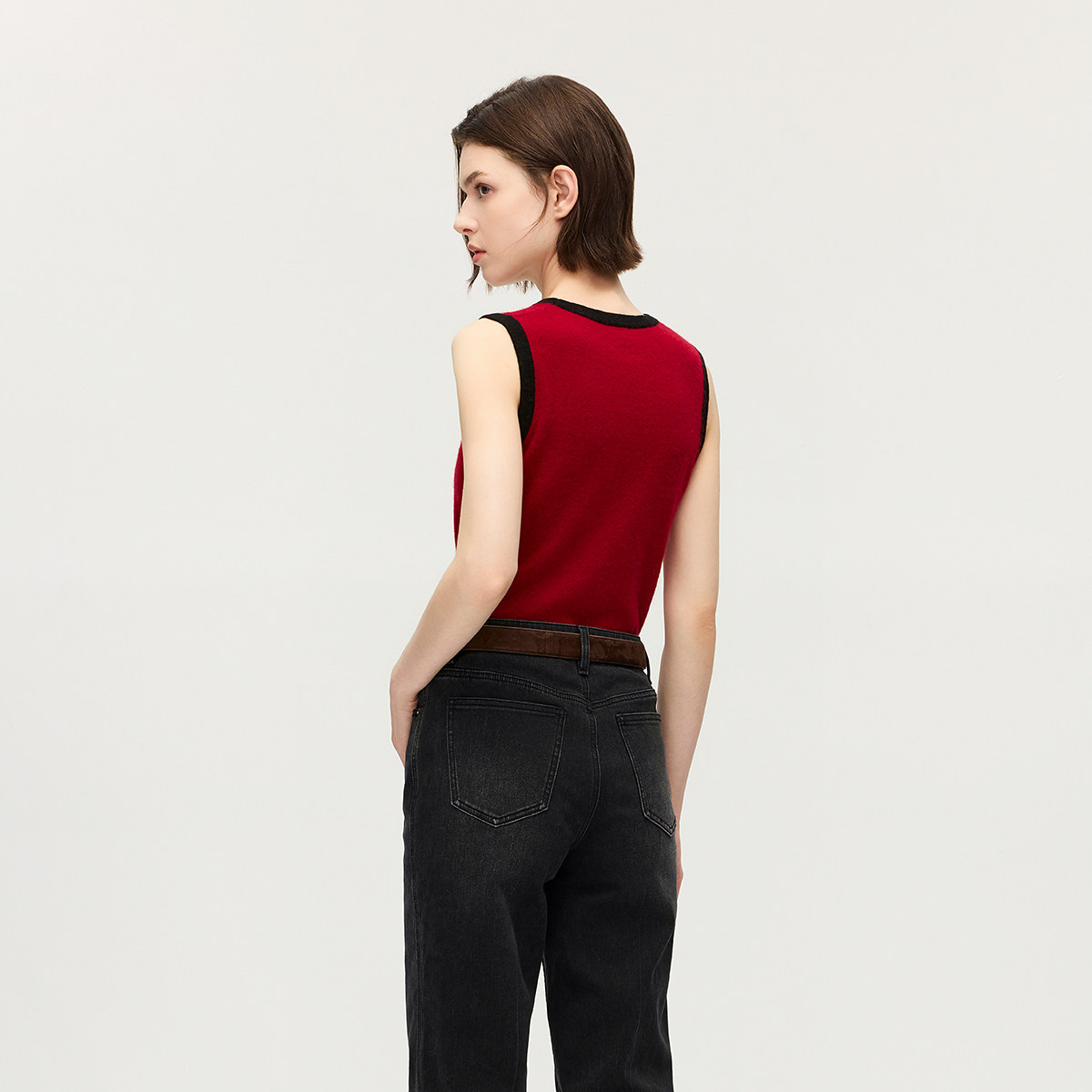 OCHIRLY欧时力 兔绒撞色毛织背心无袖马甲上衣软糯2025秋冬新