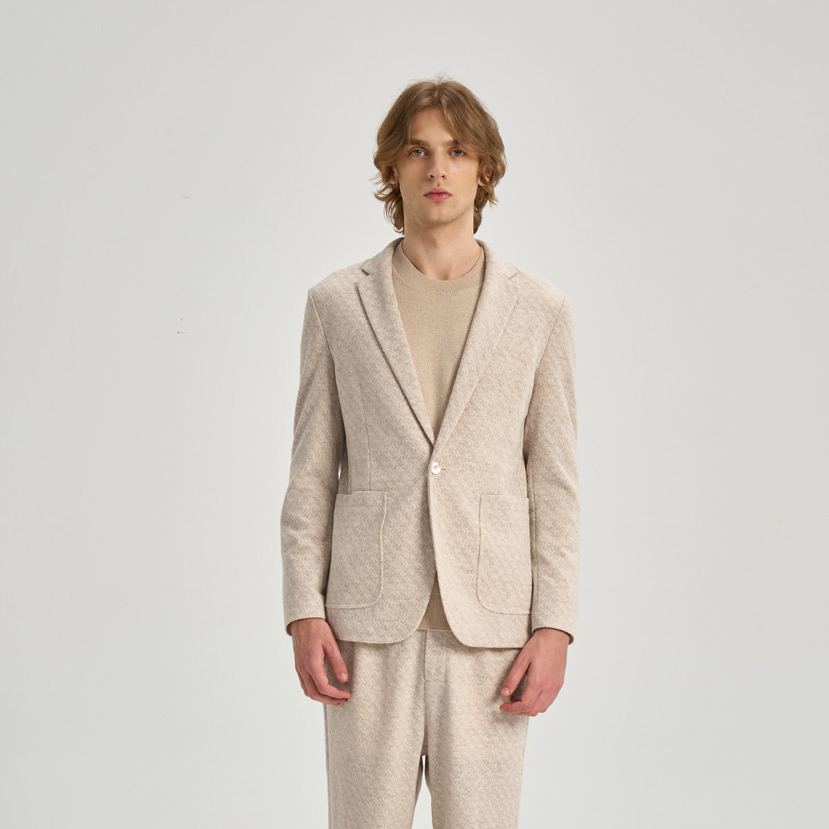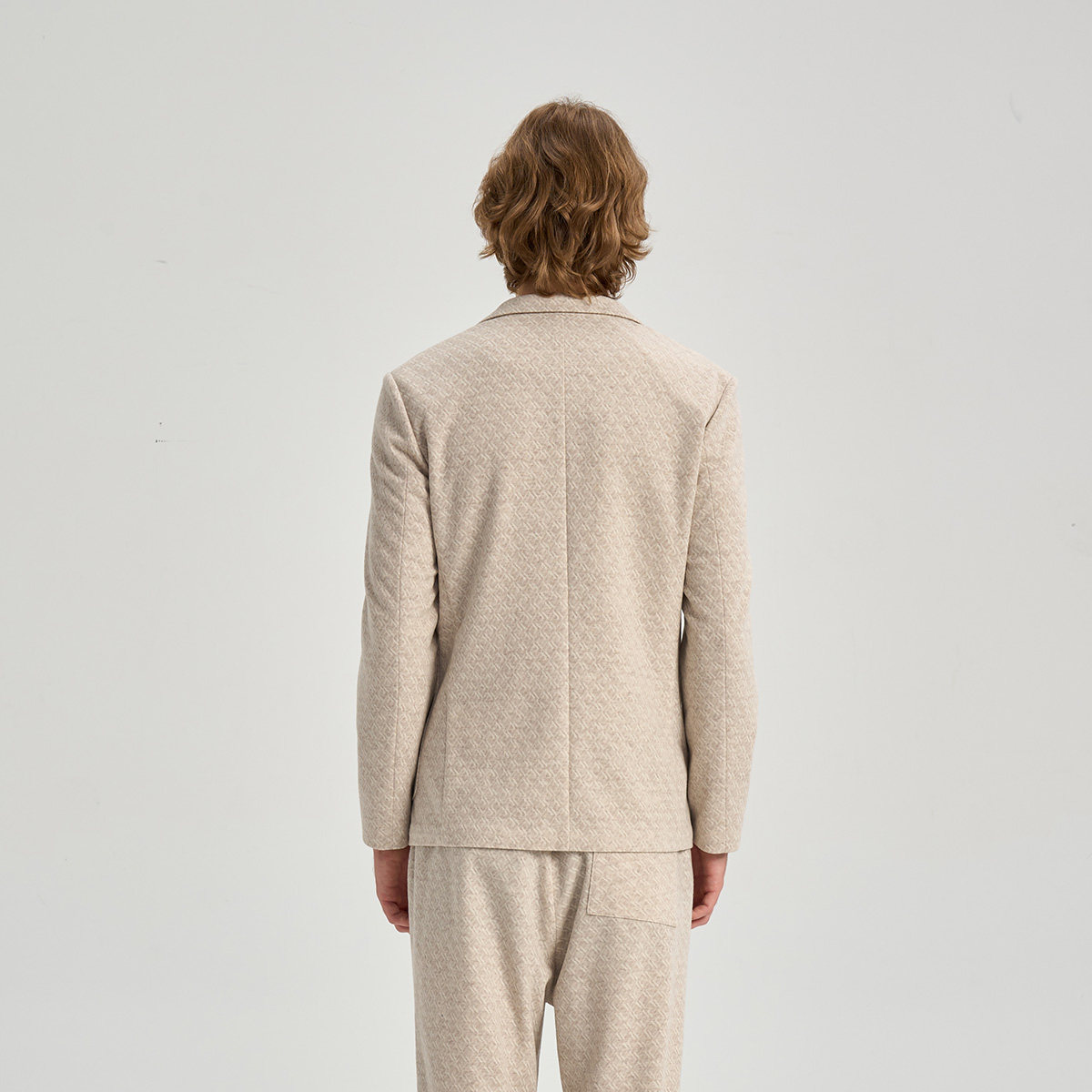 RARE威雅男装2025秋冬新款几何提花卡其色西装直筒裤休闲西服套装