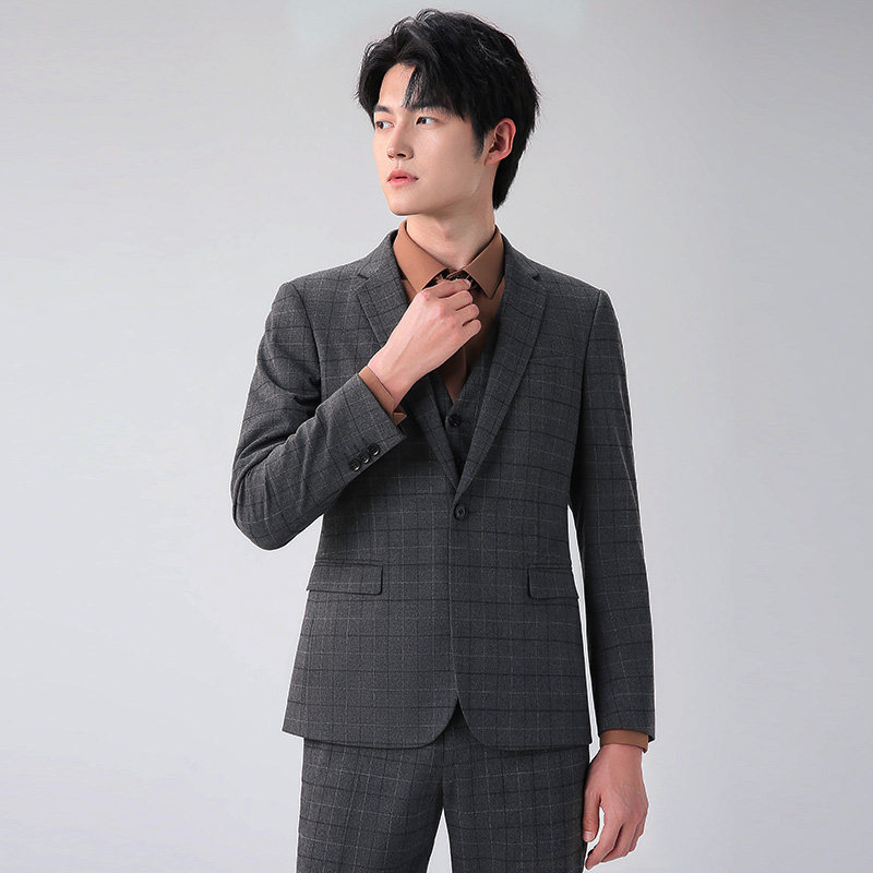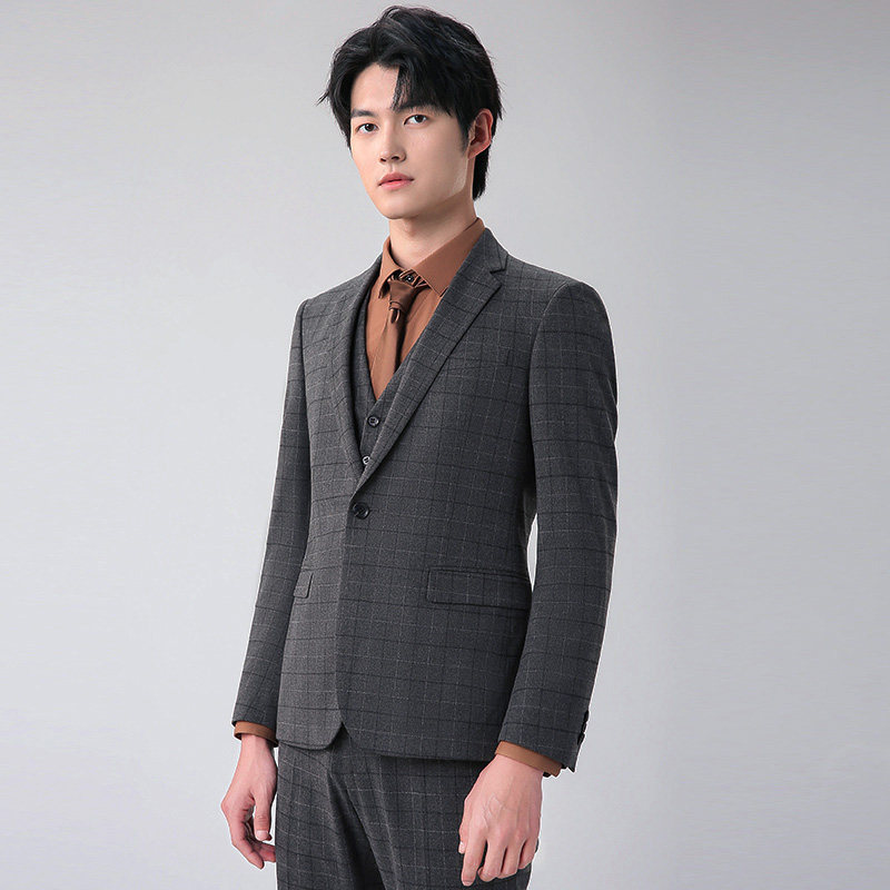 圣得西男装年冬季款男士商务休闲格纹西服套装【门店同款】