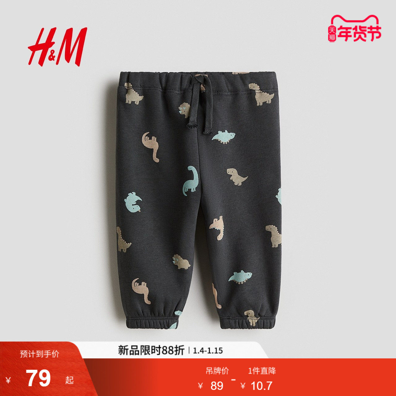 HM裤子冬季童装男婴拉绒内里印花卫衣面料慢跑裤1292686
