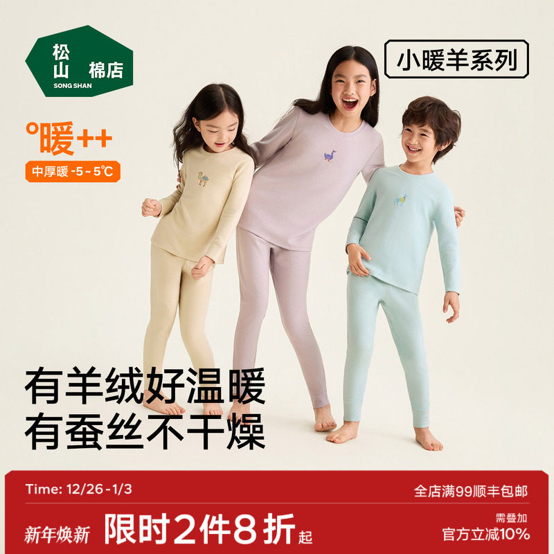 松山棉店小暖羊儿童暖暖棉保暖套装含蚕丝羊毛加厚百搭秋冬新款