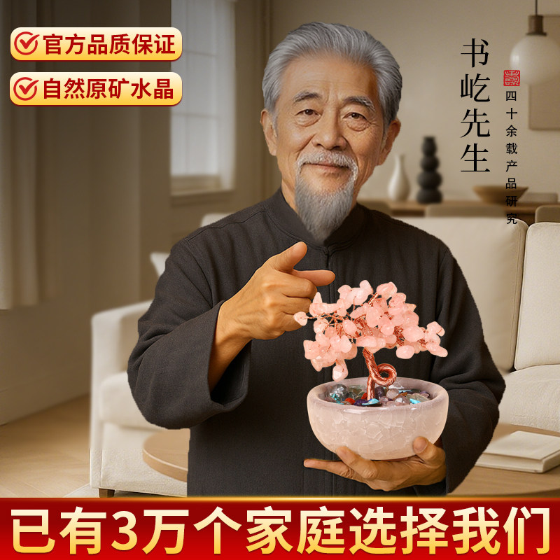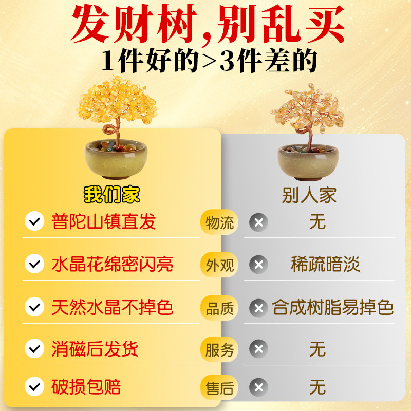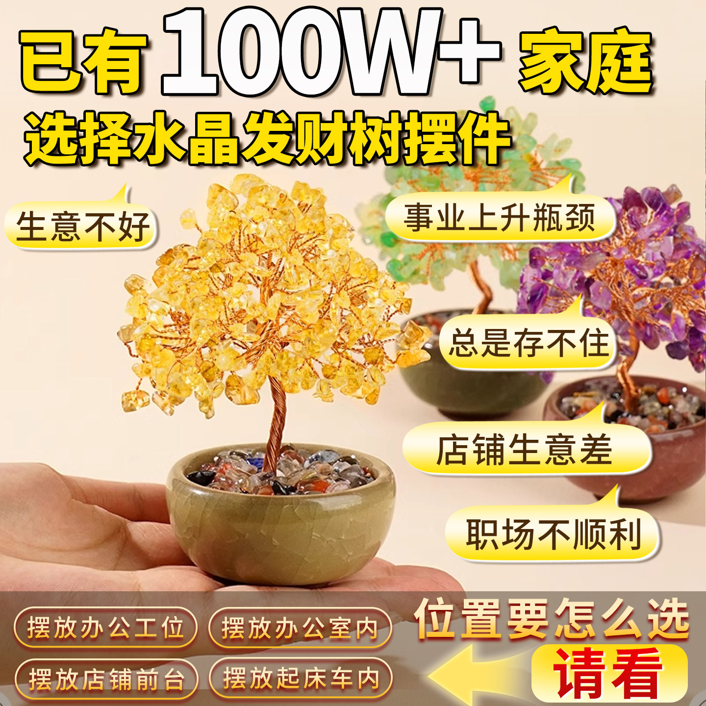 天然黄水晶发财树招财迷你小摆件紫玛瑙石工位店铺办公室桌面装饰