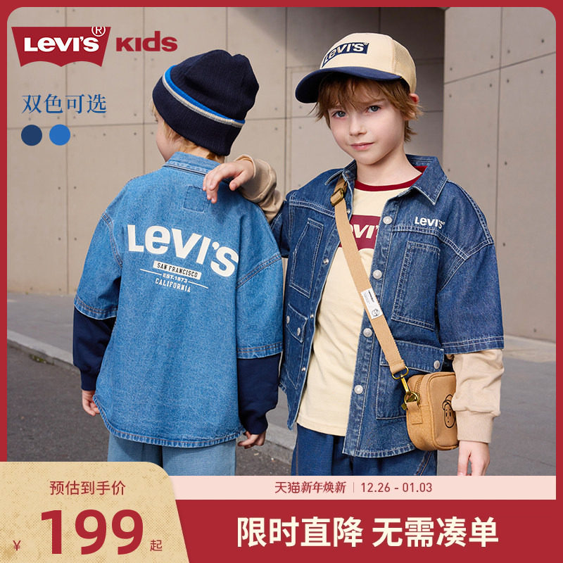 Levi's李维斯童装儿童秋装2025新款男童牛仔衬衫男孩拼色休闲外套