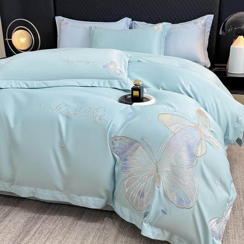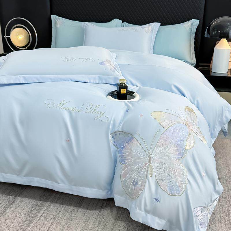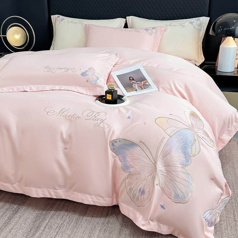 2025新款云朵棉水洗真丝刺绣四件套 翩羽系列