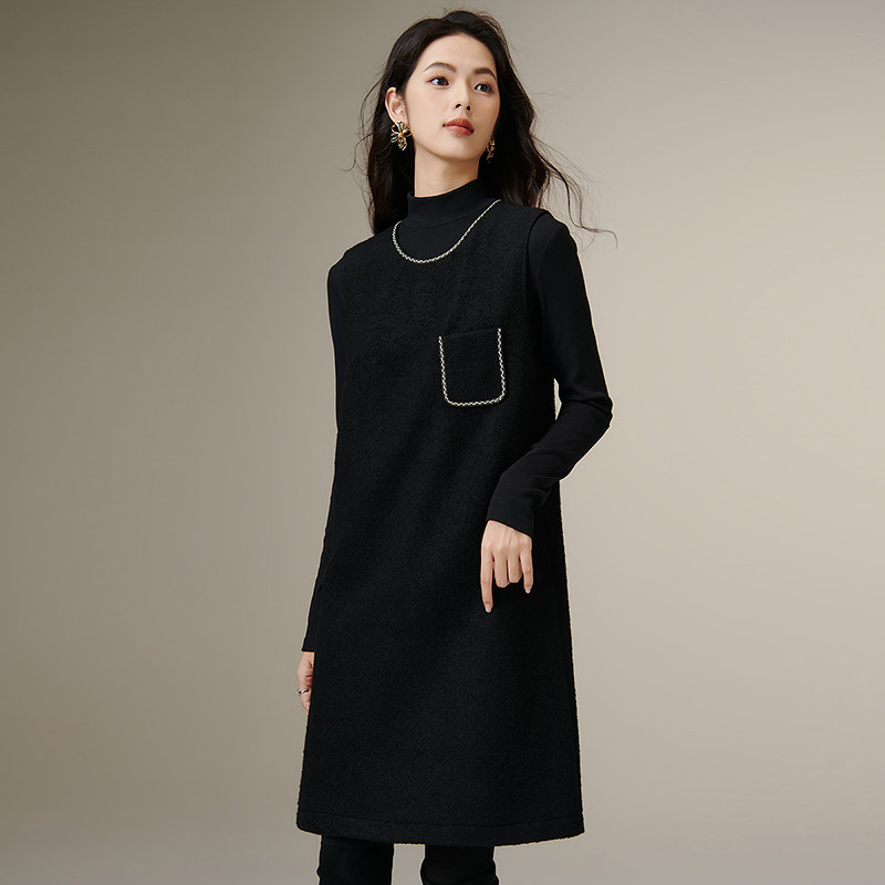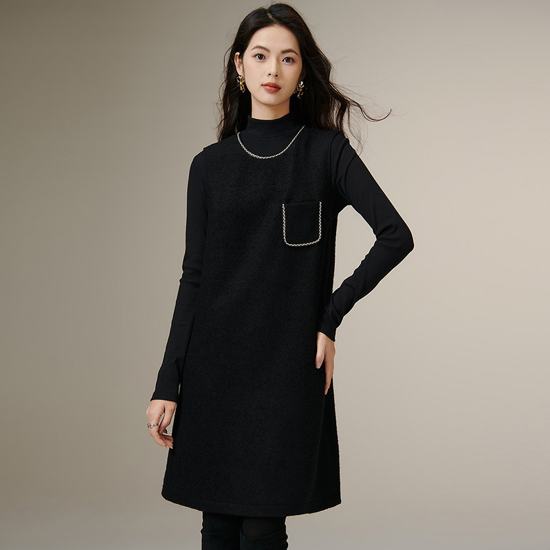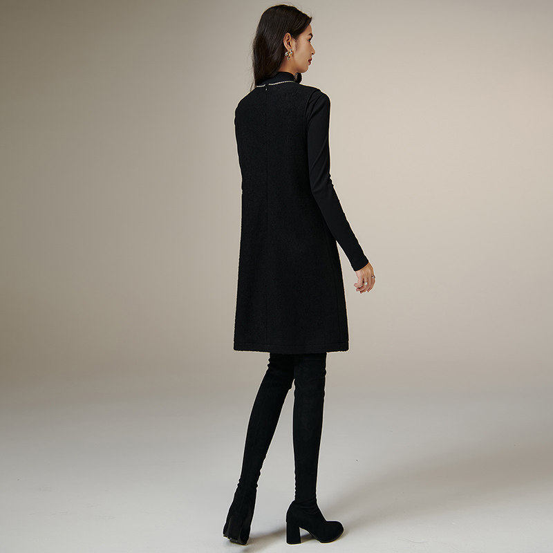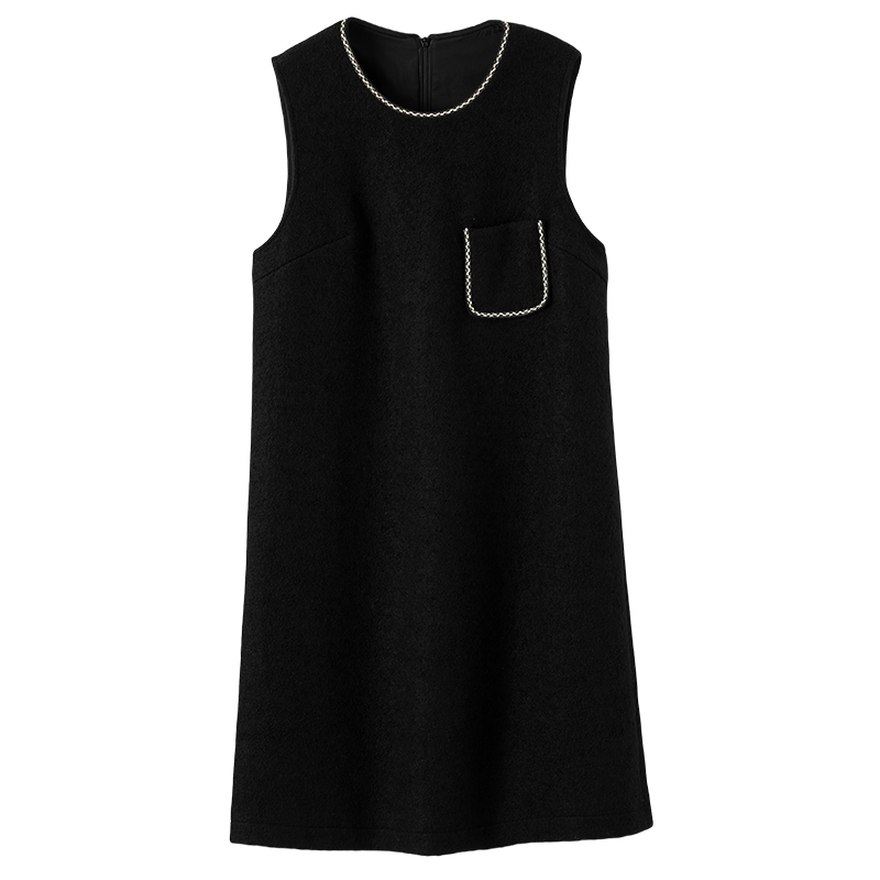 晚白2025年秋冬新款气质高级感优雅毛呢裙子绵羊毛简约无袖连衣裙