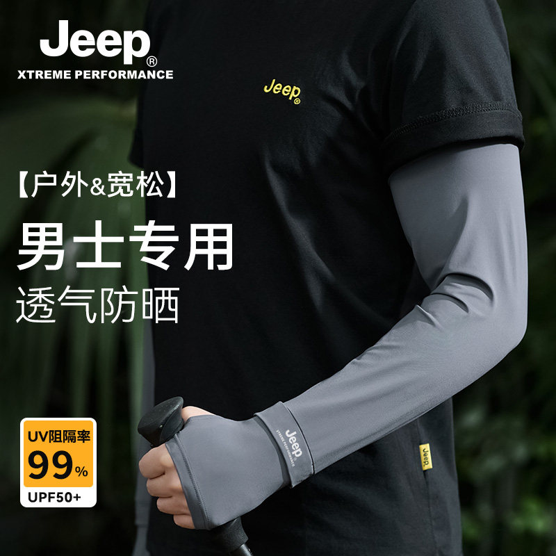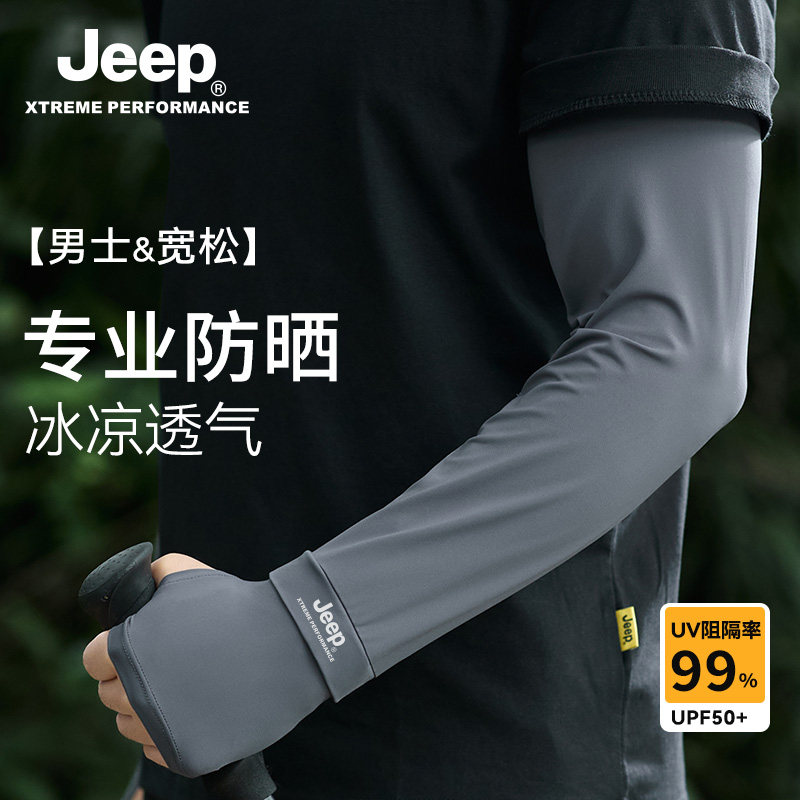 jeep吉普冰袖男士夏季宽松冰丝防晒袖套男骑行薄手套钓鱼男款护袖