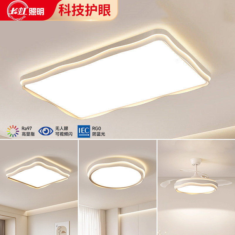 长虹照明奶油风客厅灯现代简约大气护眼led吸顶灯全屋套餐组合