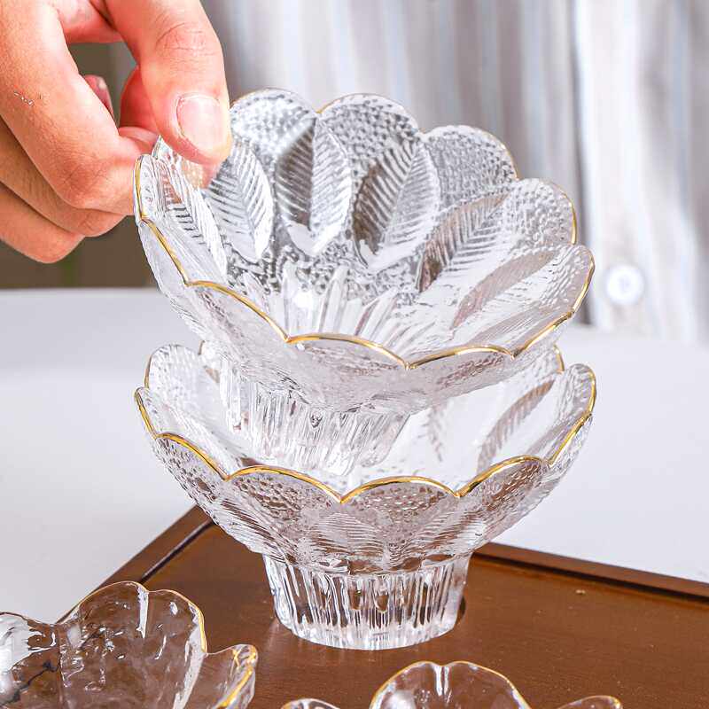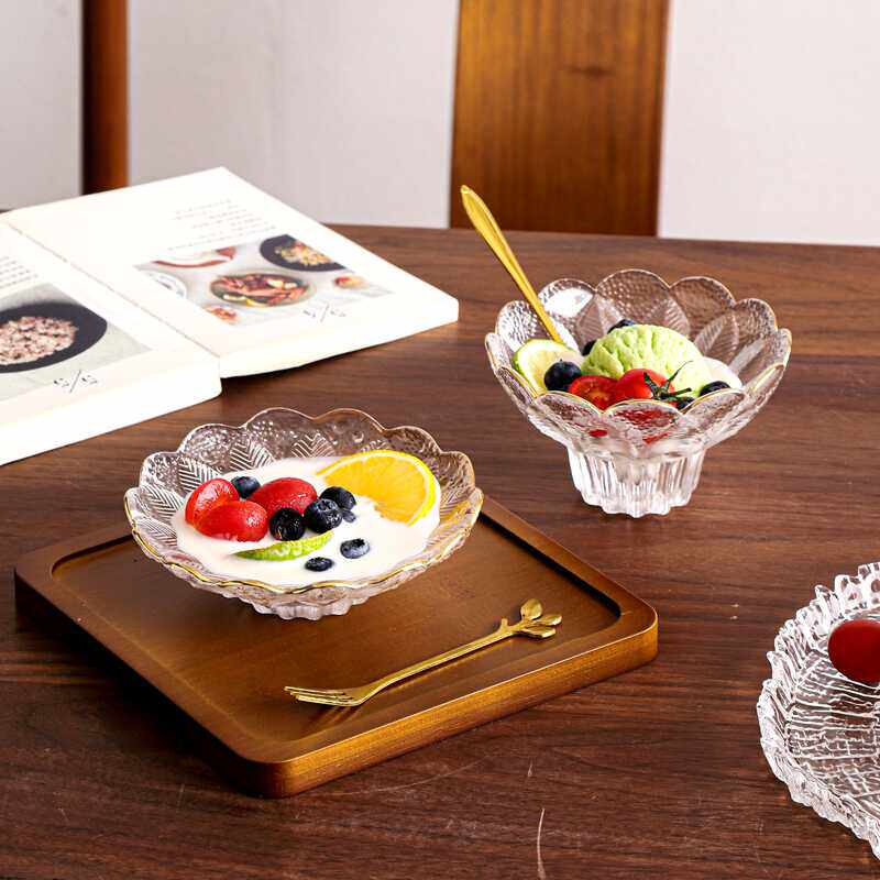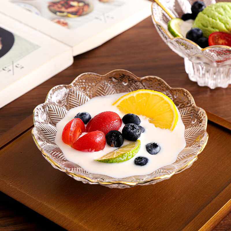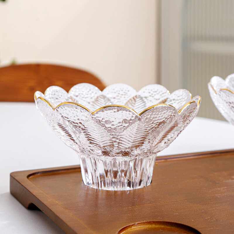 创意水果盘无铅玻璃水晶围炉煮茶浮雕刻花零食点心盘甜品碗小食碟