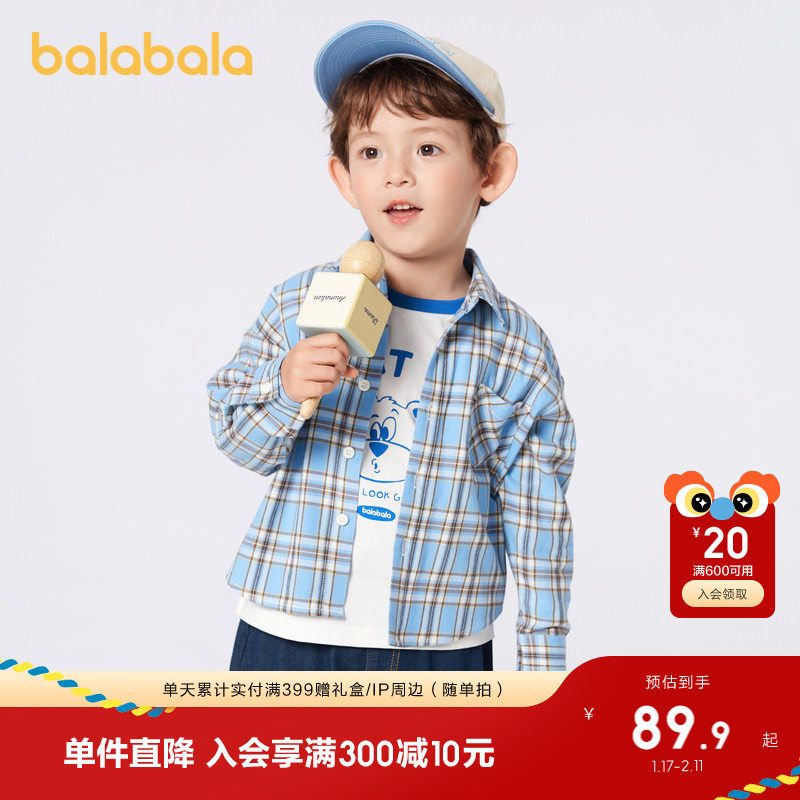 巴拉巴拉童装儿童衬衫男童女童上衣长袖衬衫春秋学院风潮亲子装