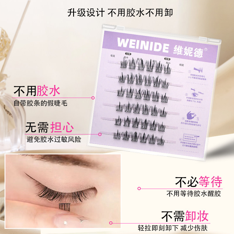假睫毛免胶水自粘太阳花花系毛自然仿真单簇下眼睫毛妈生裸妆感