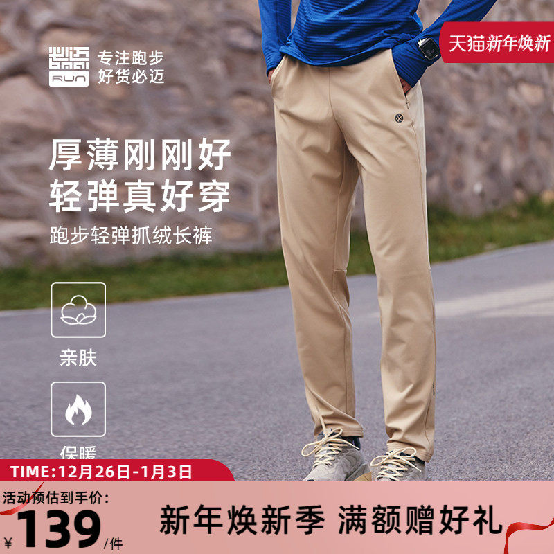 必迈加绒跑步裤弹力运动长裤男女户外慢跑保暖裤通勤直筒休闲长裤