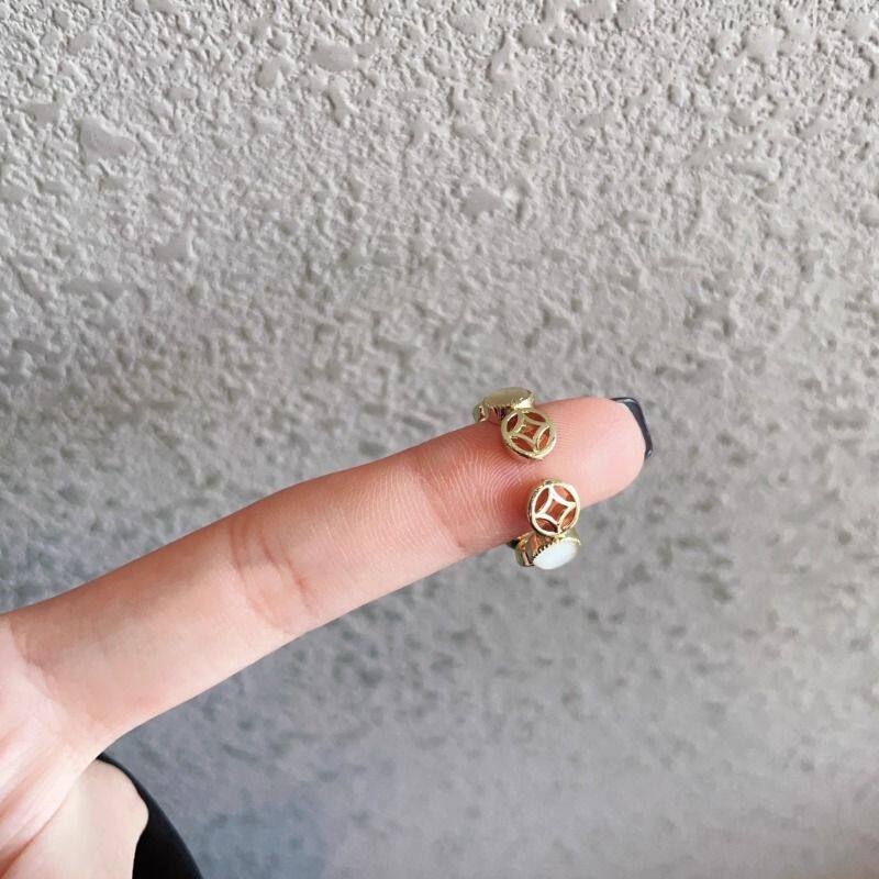 金色镂空五帝钱猫眼石戒指女轻奢高级感食指戒小众开口可调节指环