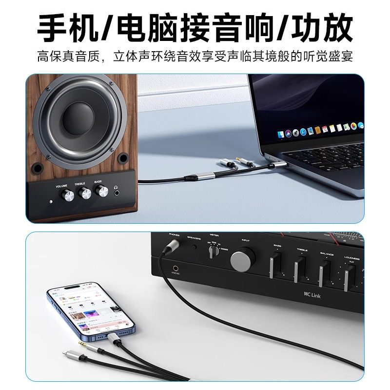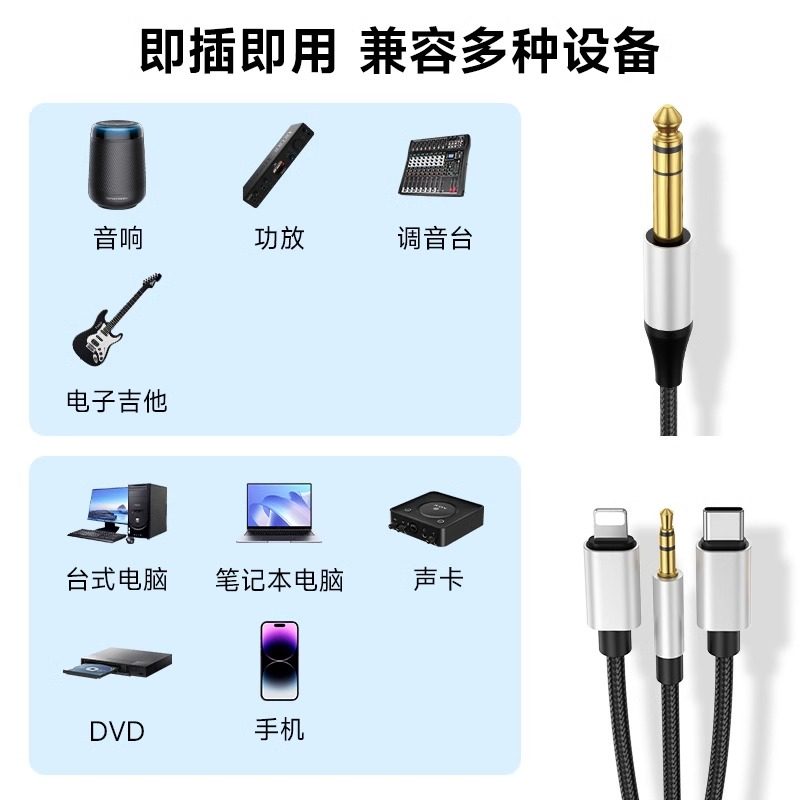 音频线三合一3.5适用苹果华为typec转6.5三芯手机音响功放调音台