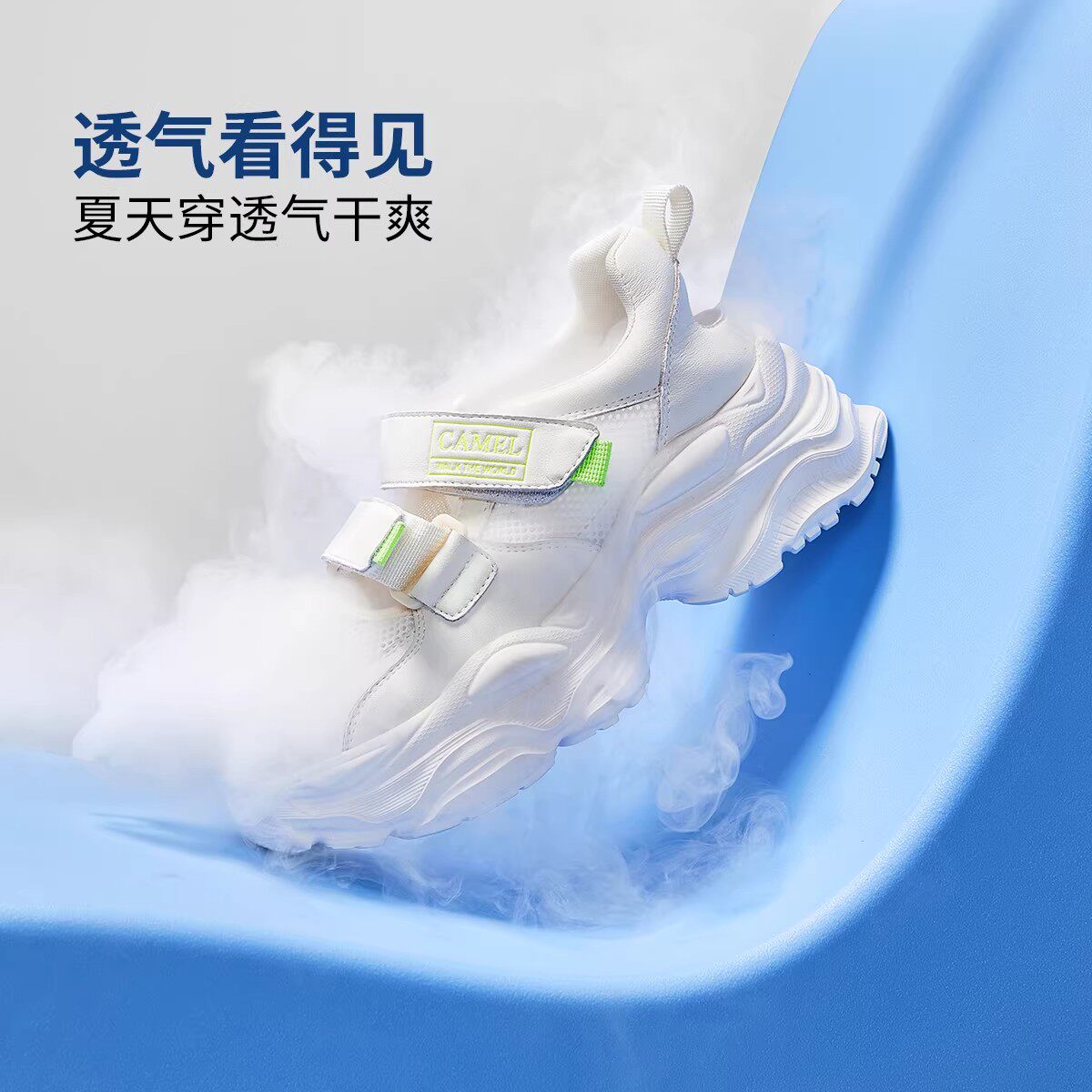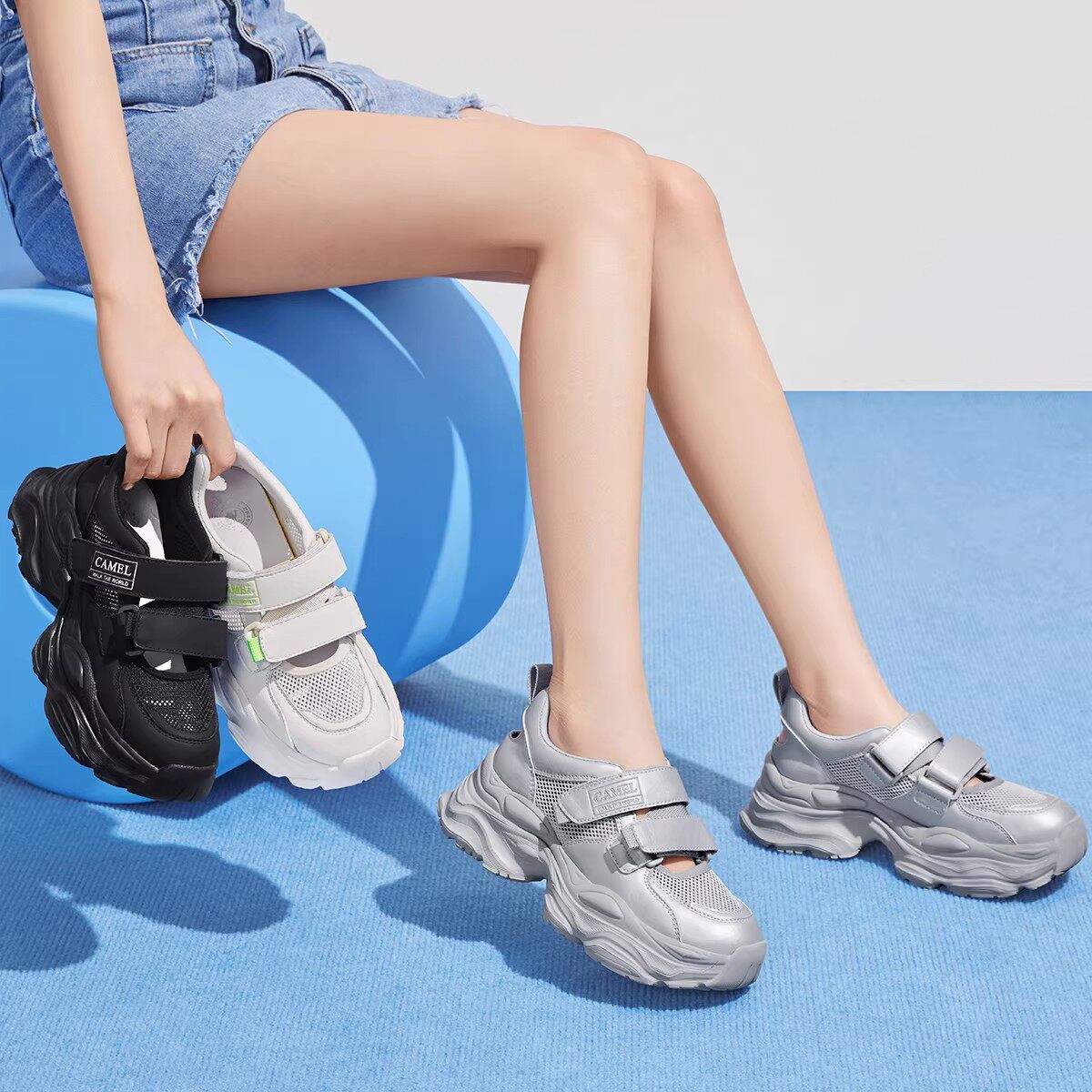 骆驼女鞋2026新款玛丽珍老爹鞋休闲运动鞋厚底网面镂空沙滩凉鞋女