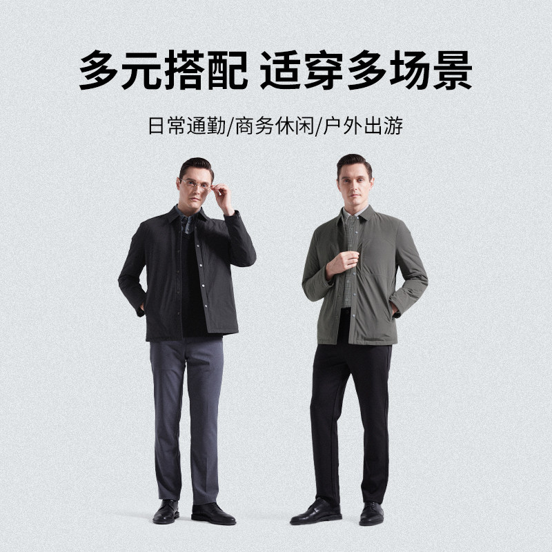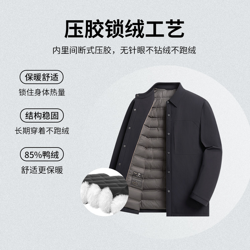 杉杉官方轻薄衬衫羽绒服男士冬季新款鸭绒保暖夹克商务外套爸爸装