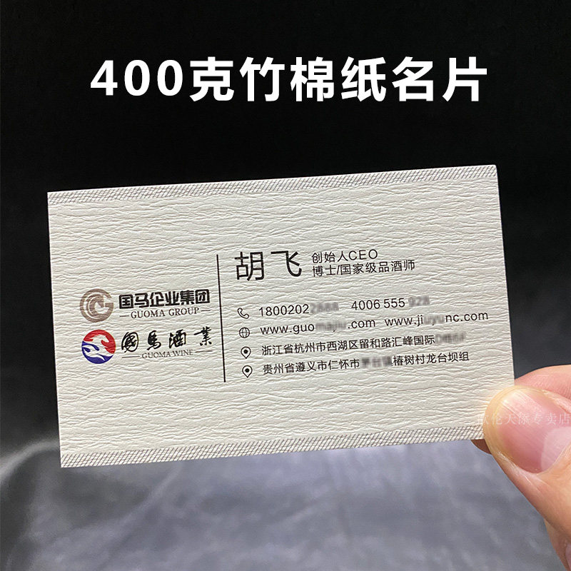 竹棉纸张名片400g高档纸张名片制作订做个性特种纸双面印刷包邮