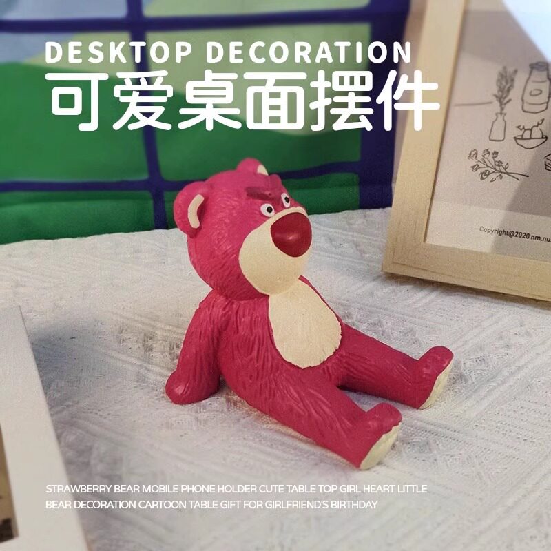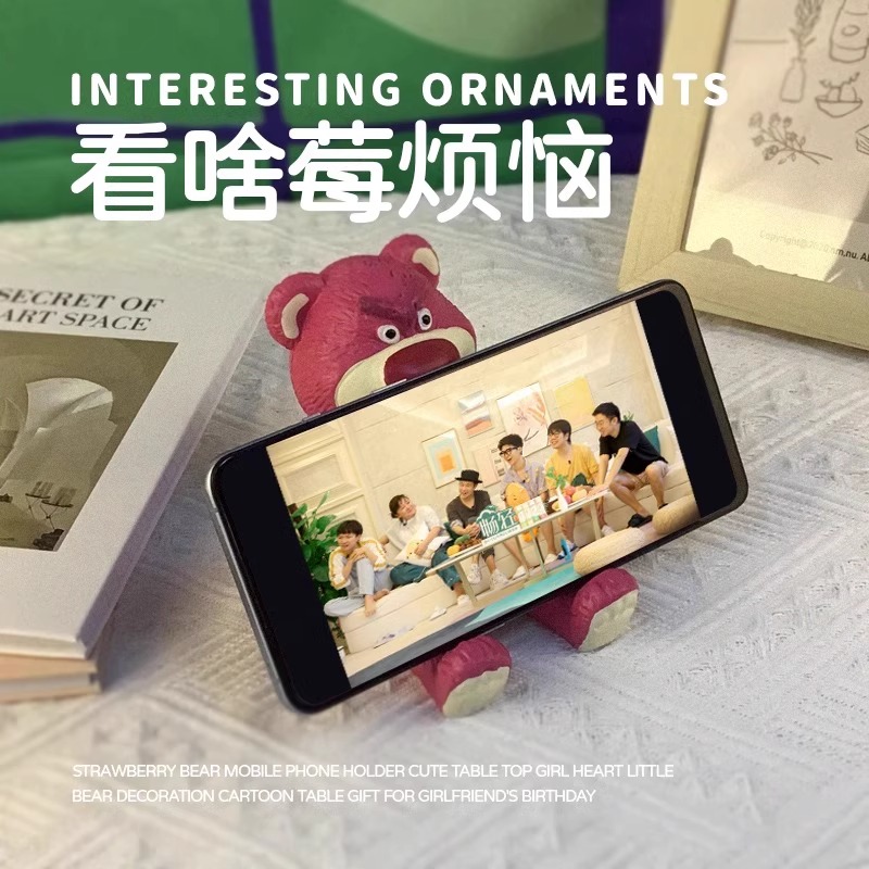 抖音网红草莓小熊手机支架桌面摆件可爱卡通装饰懒人创意底座可爱粉色少女平板通用电脑
