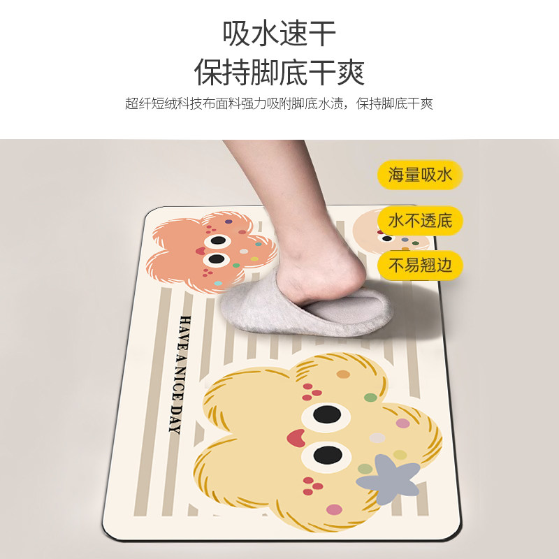 圣卡罗帝硅藻泥浴室卫生间卡通吸水地垫厕所速干防滑踩脚垫小地毯