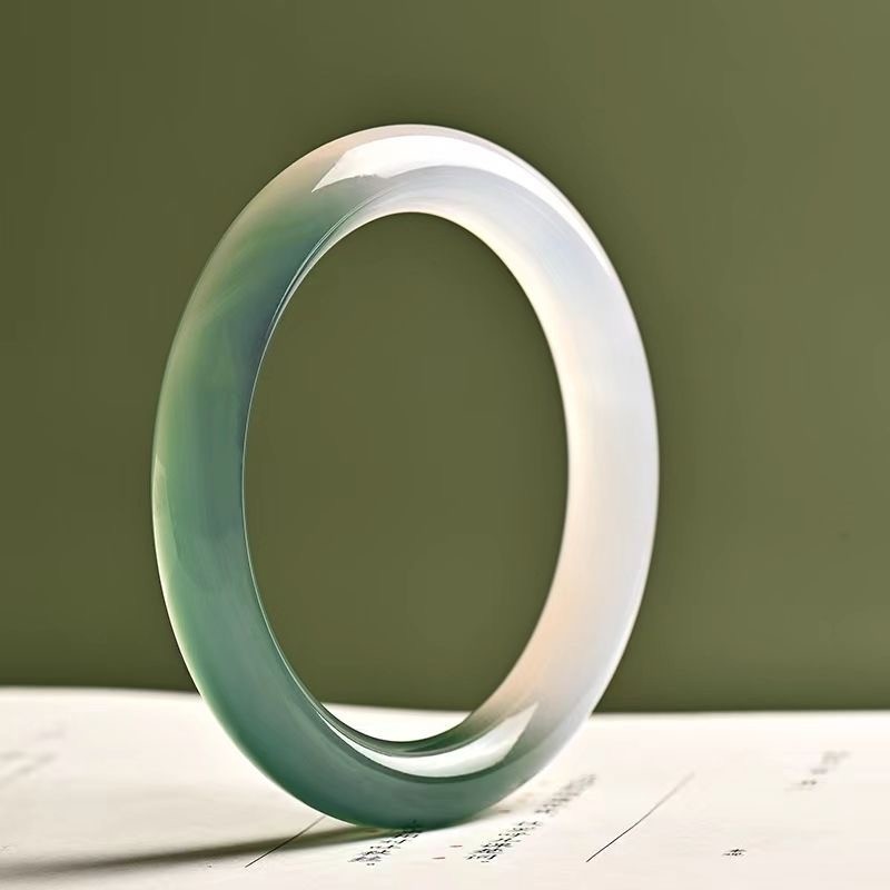 半山半水天然玛瑙手镯玉髓冰种冰透平安玉镯渐变浅绿新中式女礼物