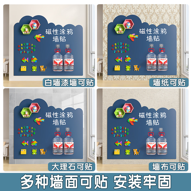 黑板磁吸家用教学儿童可擦写磁力不伤墙可移除涂鸦写字板粉笔专用无尘留言挂墙式记事板墙面画板自粘白板墙贴